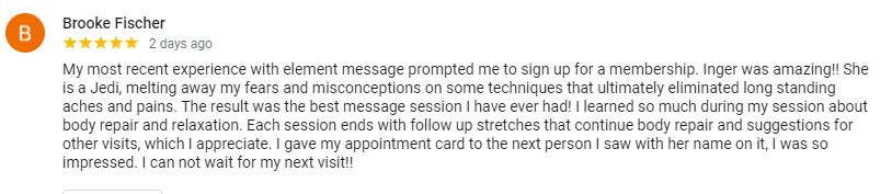 My 60-minute massage was fantastic. Kara did a great job and hit on all my stress points. Happy to go back next time.