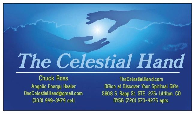 I am an Angelic Energy Healer. My life was spared by a visit by an Angel that touched me, sparing my life and healing my body. That touch spiritually awakened me and set me on a new life path. I now try to spiritually enrich the lives of others by sharing that Heavenly touch given to me, healing some and spiritually enlightening others. I am available every Saturday at Discover Your Spiritual Gifts (DYSG) in Littleton, CO. Please come and see me and let me help enrich your life!