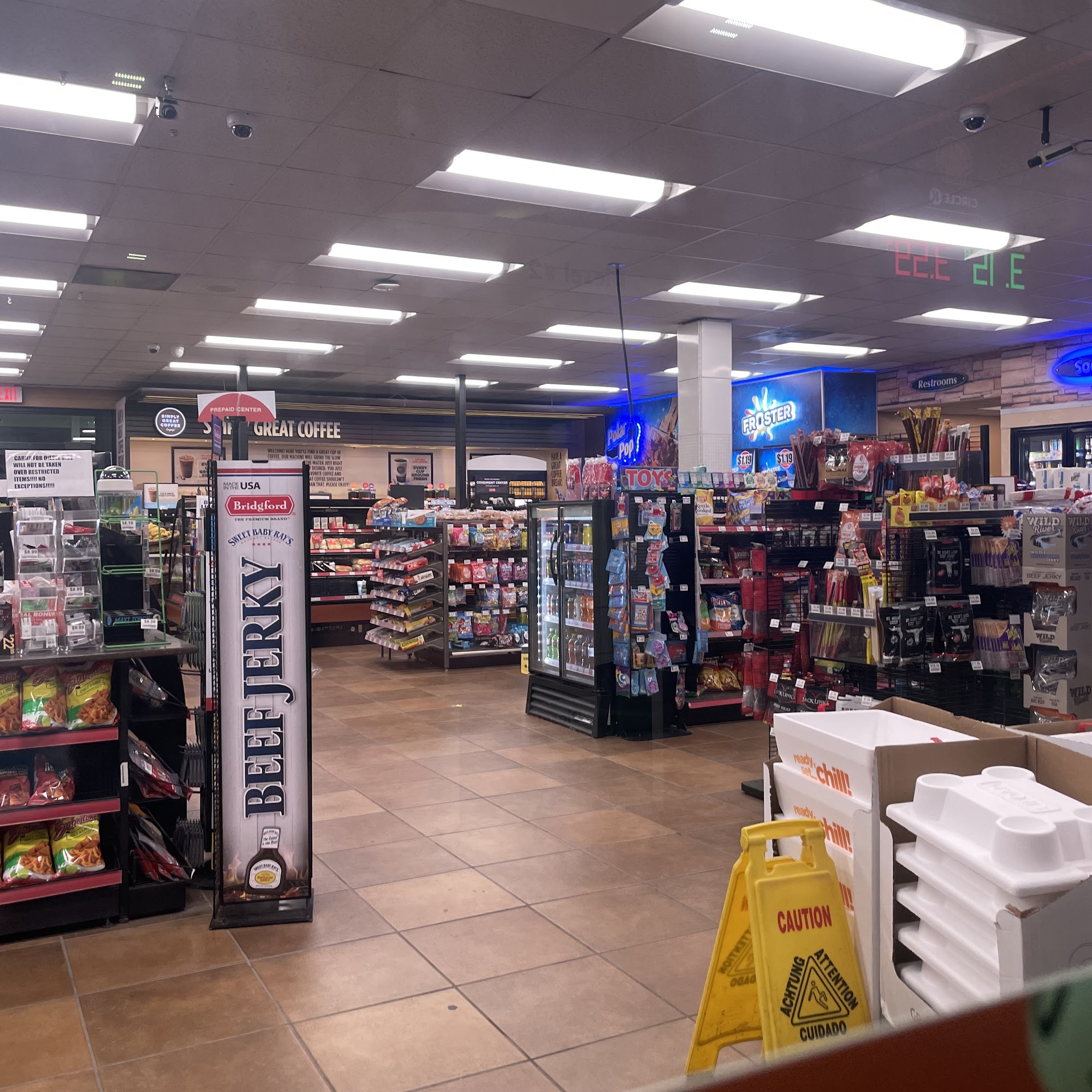Restrooms are always clean and CSR’s are usually friendly but have to get there at a time when staffed well or food on rollers gets sparse.