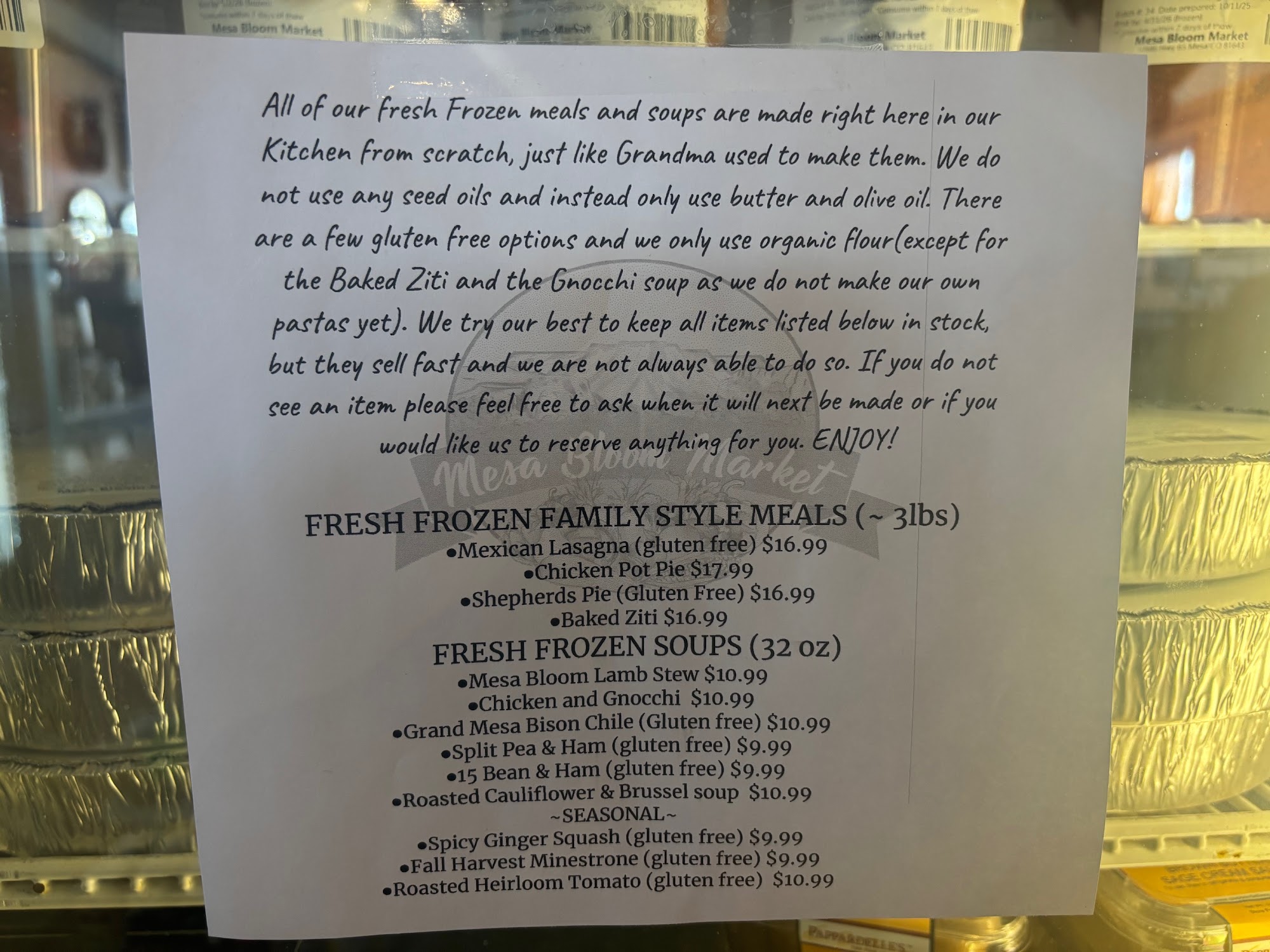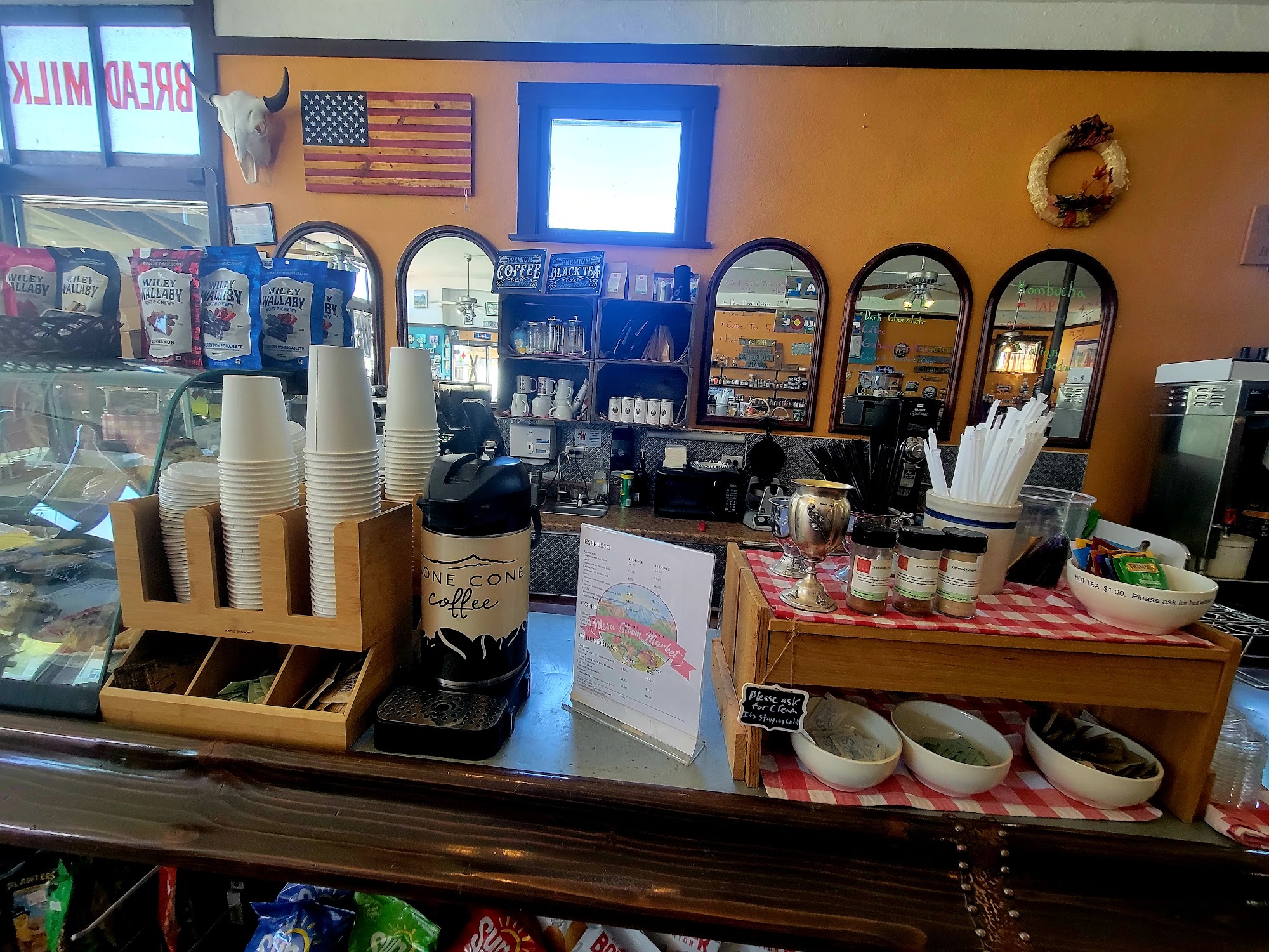 Mesa Bloom Market is a charming small grocery and general store that also serves coffee and ice cream, making it a popular spot for locals and visitors alike. Owned by passionate individuals, the store offers a wide variety of local food products, including produce, fresh and frozen meats, dairy, bread, beverages, snacks, and fresh salsa. Visitors can also find a selection of fresh frozen soups and meals. Beyond food, the market features a great assortment of local gift items such as art, jewelry, candles, soaps, apparel, and crafts, along with fishing supplies, Kershaw knives, Loki jackets, and more. The atmosphere at Mesa Bloom Market is warm and inviting, combining a sense of history with modern touches. Many customers appreciate the friendly and helpful staff, who often provide personalized recommendations like homemade salsa or breakfast burritos. The store’s coffee and pastries receive praise for their quality, with some noting the deliciousness of local baked goods and beverages. The owners’ care and the store’s community-oriented vibe make each visit enjoyable and memorable. This market is a vital part of the community, offering a mix of essentials, local foods, and unique gifts. It’s a place to support local growers, artisans, and small businesses while enjoying friendly service and a cozy atmosphere. Whether stopping by for a quick coffee, picking up groceries, or browsing local crafts, Mesa Bloom Market is a true gem in the area.