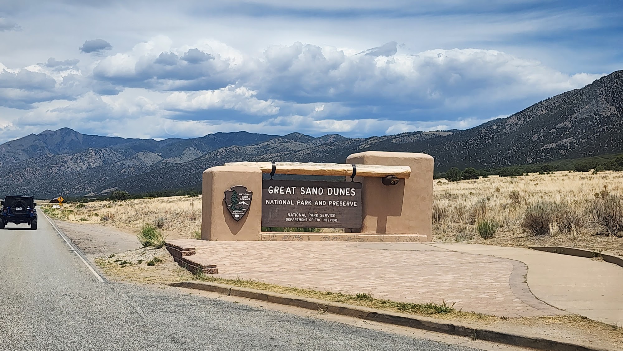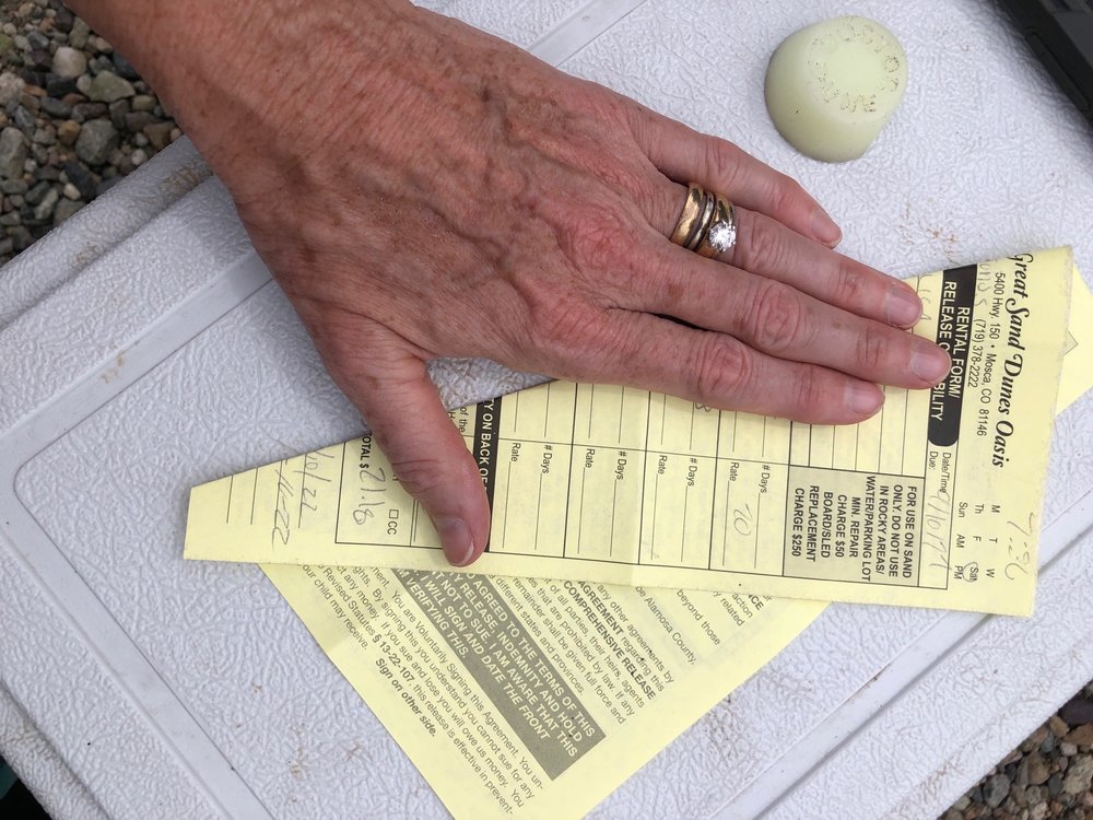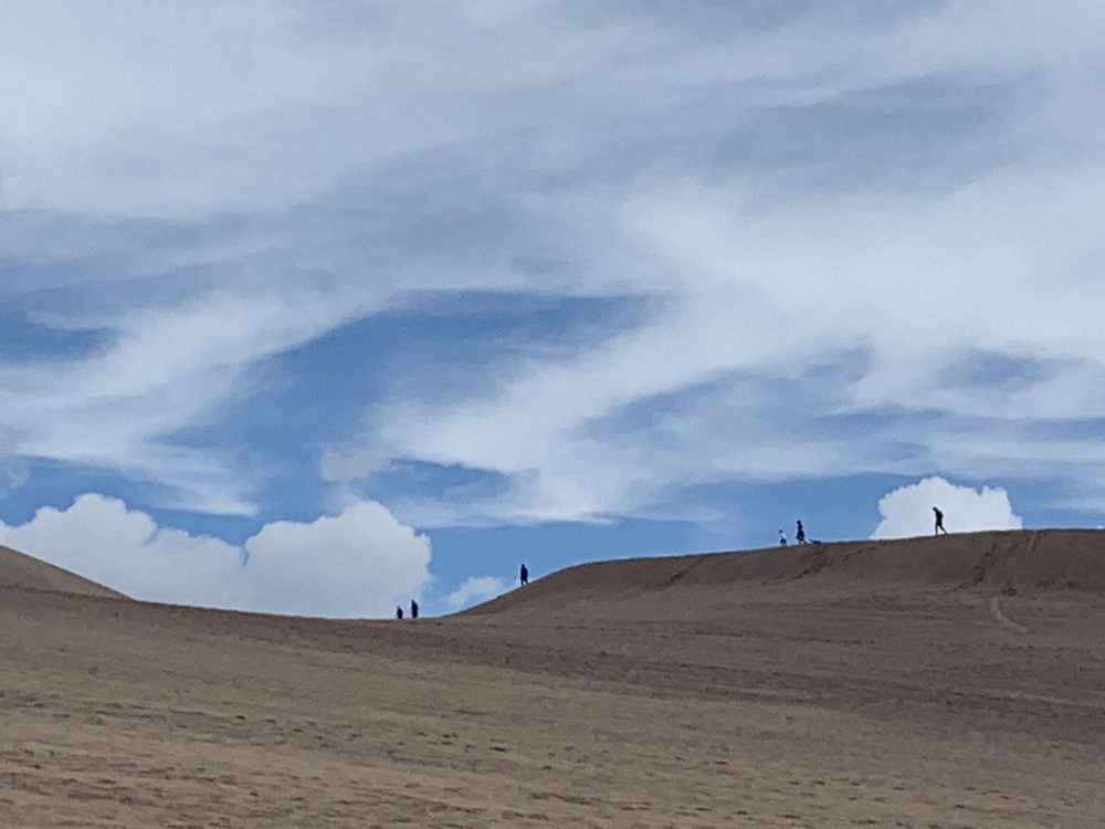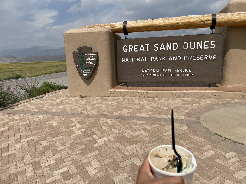 Great Sand Dunes Oasis is an RV park and camp store located just outside the Great Sand Dunes National Park, only a couple miles from the dunes. Its primary advantage is its unbeatable location, with incredible views of the sand dunes and fields full of flowers. The RV park offers around 20 full-hookup sites, though they are a bit close together and small. The shower house is very clean, spacious, adequate, and secured by a security code. There is a camp store and a restaurant on the property, which is a short walk down the hill. The store sells essentials and rents very good quality sand dune surfboards and sleds, with staff who are friendly, informative, and excellent at clearly explaining how to use the equipment. The restaurant has decent food but limited hours. The property also has gas pumps, a playground with a small play cabin and swings, and cabins for rent. A note for visitors: the area has stickers called 'goat heads,' so checking shoes is advised, and it is a dark sky area, though bright lights from campers can affect stargazing. It is considered a very safe, nice place, especially popular with families.