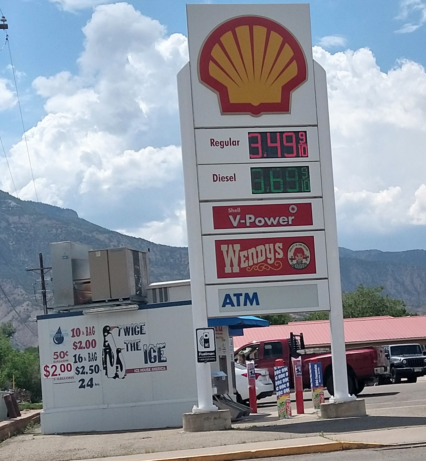 Very clean inside. The bathrooms are shared with Wendy's customers which is attached to the Shell station. Twice The Ice an ice and water dispenser is in the corner of the parking lot.