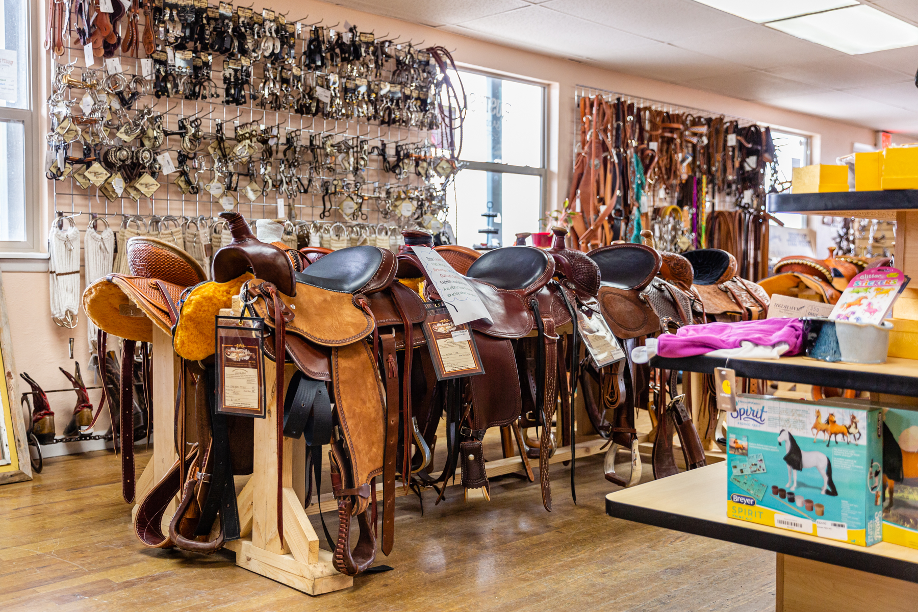 Rusty Spur Saddle Shop is a friendly and knowledgeable equine shop that caters to both Western and English riders. The staff, led by Heidi, are always eager to assist customers in finding the right saddles, tack, and accessories. The shop offers a wide selection of new and used items, including consignment pieces at fair prices. Customers praise the shop's unique selection, including locally-owned products, as well as the easy parking and quick checkout. Whether you're looking for riding gear, horse supplies, or just a fun place to browse, Rusty Spur Saddle Shop is a must-visit destination for anyone who loves horses.