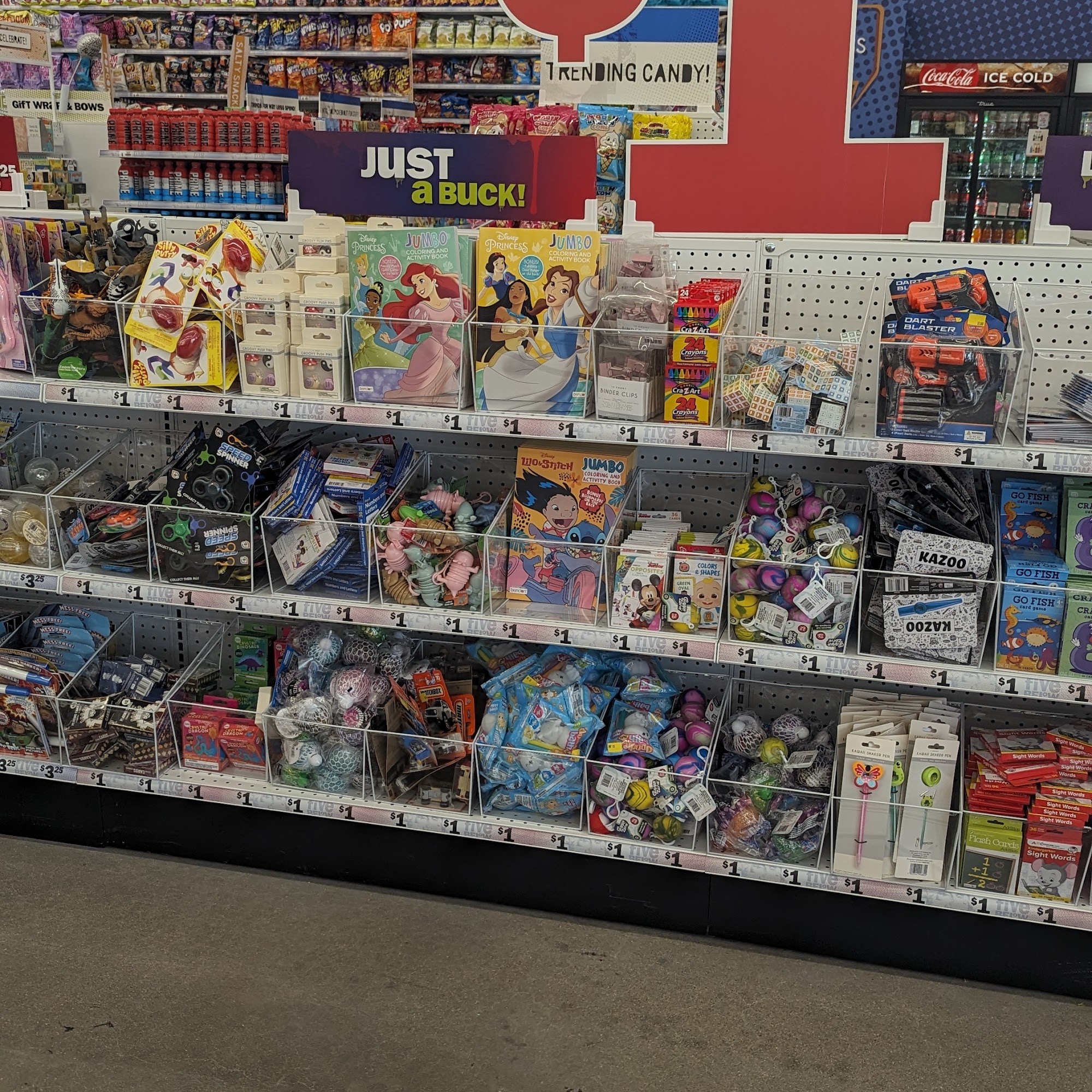 Five Below is a fresh, clean, and brightly lit discount store in a convenient location. It is well-organized and perfectly stocked with a wide variety of things for everyone. This includes school supplies, home goods, fashion, toys, candy, arts and crafts, and seasonal decorations. The employees are always nice and everywhere willing to help out. It is a good store to have in the area.