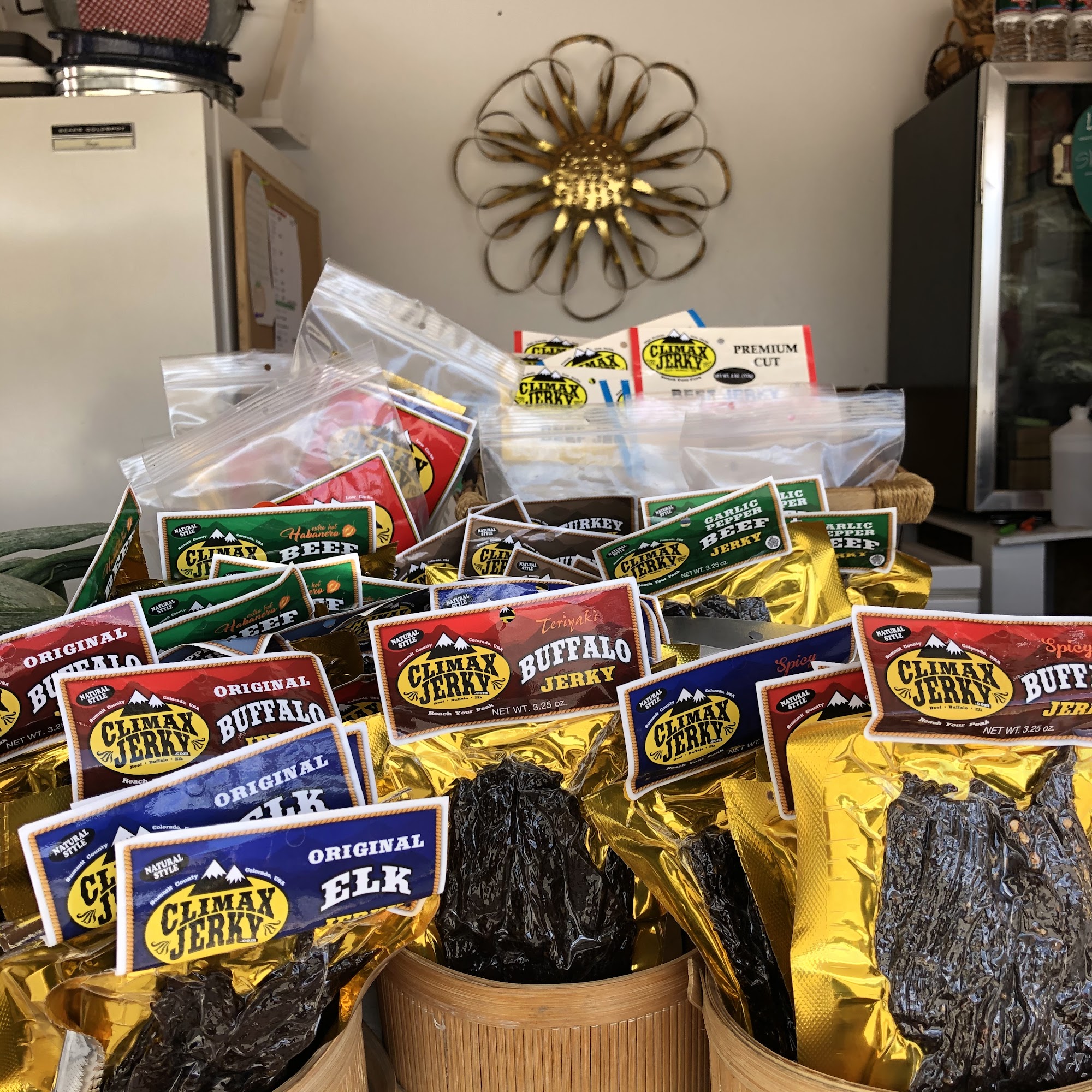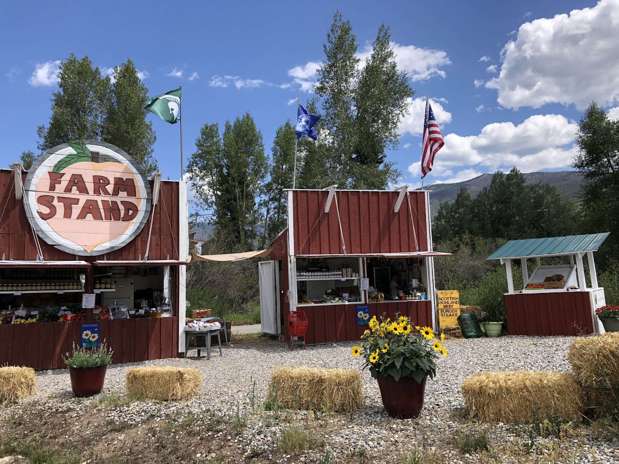 Fresh produce from Palisade Colorado. Palisade Peaches, field grown tomatoes, Olathe sweet corn, green beans, Zucchini, squash, plums, nectarines, apples, cider, green chilies, pumpkins, winter squash, honey, jams, salsas, preserves, jerky, fresh baked goods. And so much more local seasonal produce!