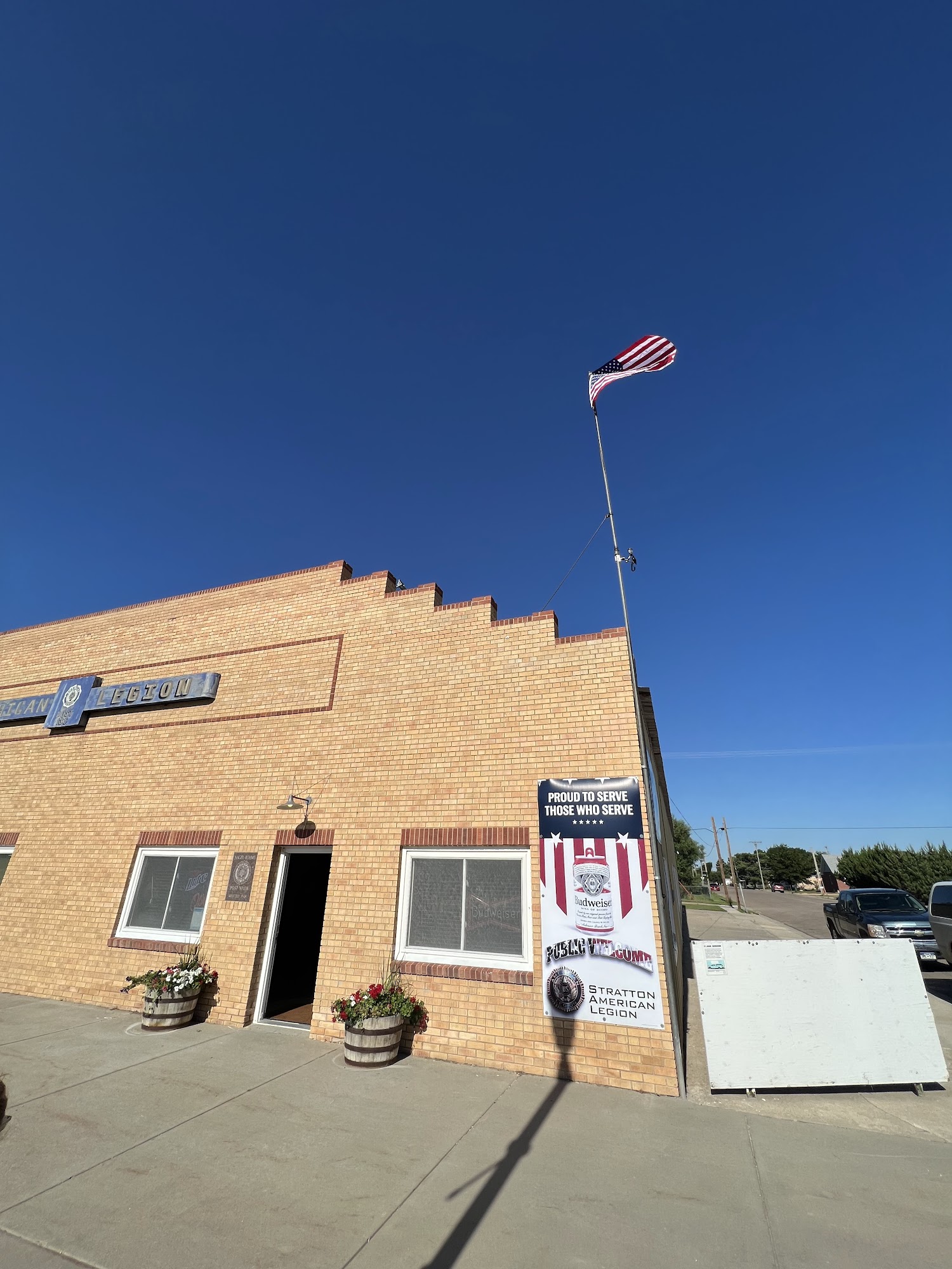The American Legion was on Colorado Avenue. This is the main street of Stratton. It has a bar with pool tables and darts. Connected, is a large space available to rent. We were at the Homecoming banquet here. There were lots of tables, but we didn't feel crowded. It's a nice bright space with high ceilings.