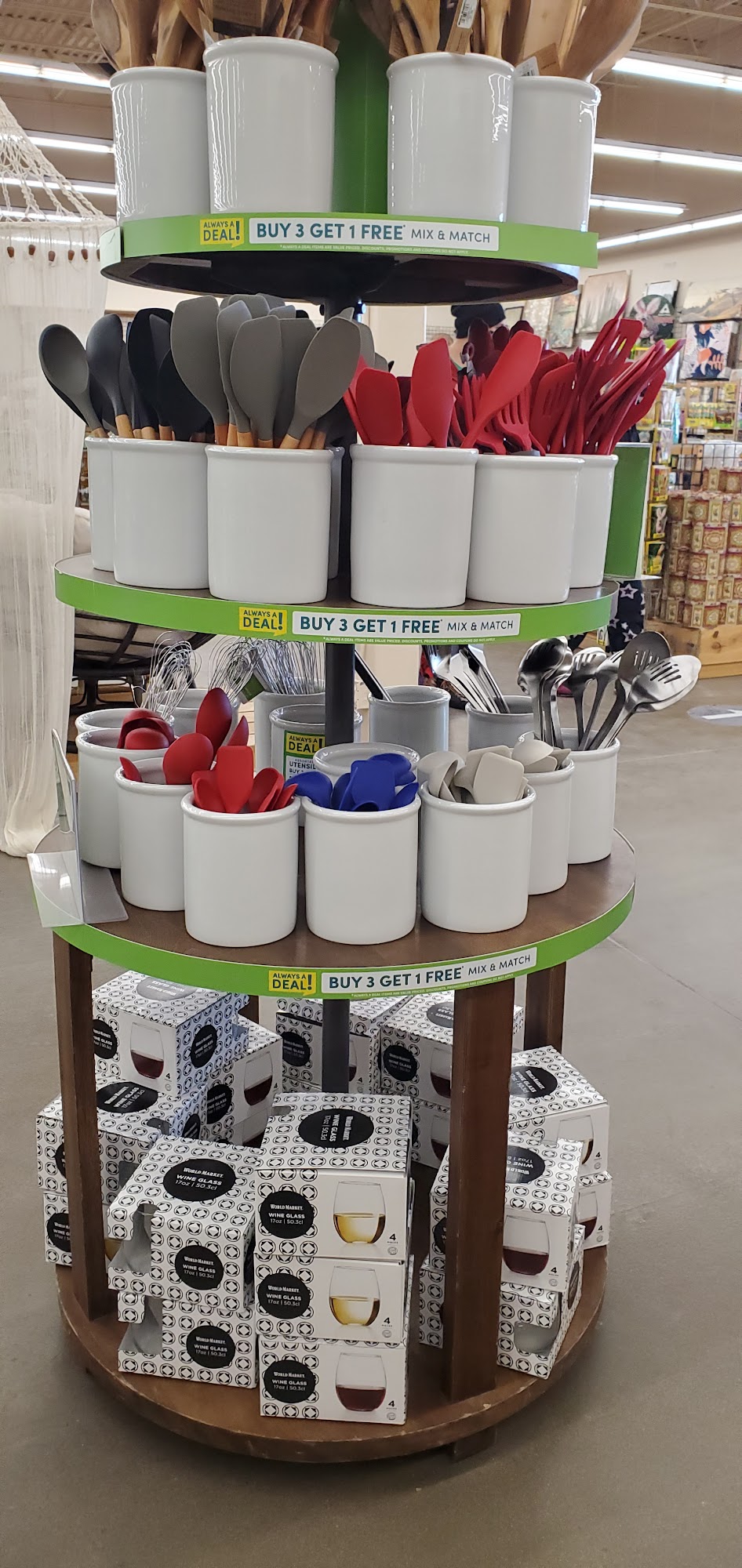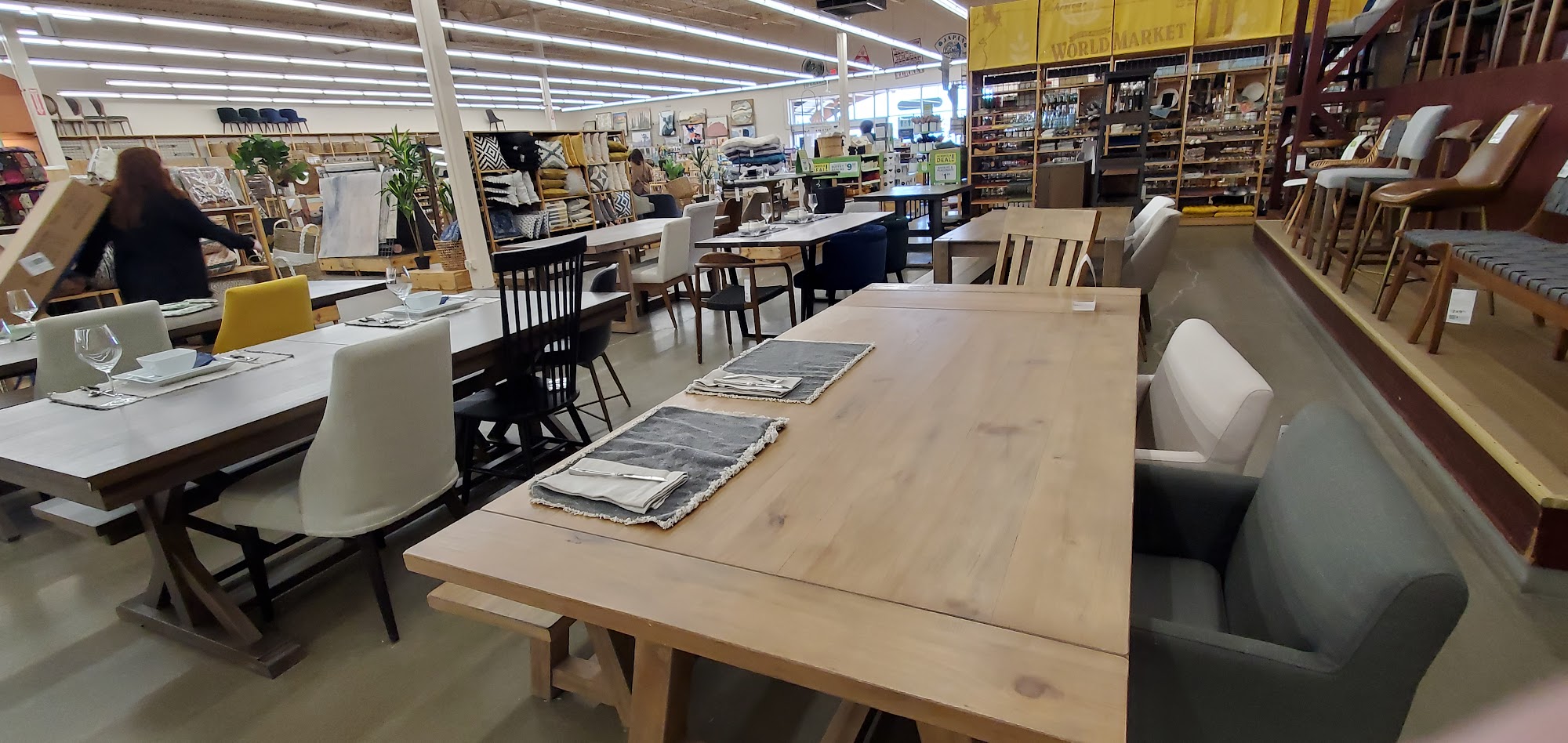 World Market offers a wide, eclectic selection of unique and artisan products, from furniture and home decor to imported food and affordable gifts. Customers can find stylish items to dress up their homes, including patterned curtains, area rugs, and decorative lamps. The store also has an extensive selection of rustic wood furniture for living rooms, dining rooms, and home offices. Some locations even have beer and wine sections with helpful staff. Customers appreciate the somewhat unique items and international food and candy options that can't be found elsewhere. However, the prices are considered high, even when items are on clearance. The selection has changed over time, with fewer specialty items. But the store is still praised for its quality, elegance, and ability to provide a unique touch to the home. Customers also highlight the attentive and professional staff, who are willing to go the extra mile to assist. The only downside is the store's policy of not allowing shopping carts to leave the premises, which can be inconvenient for larger purchases.