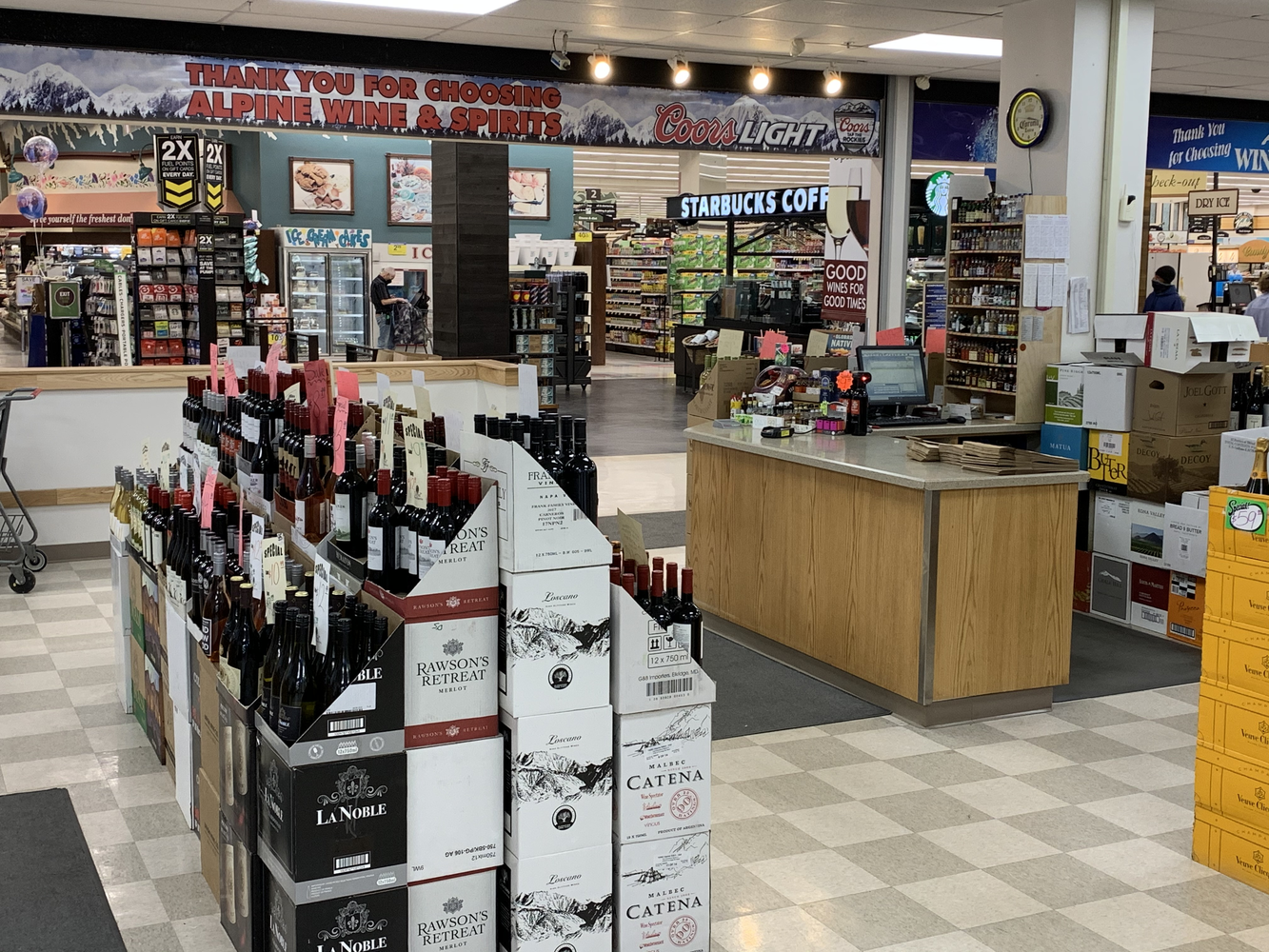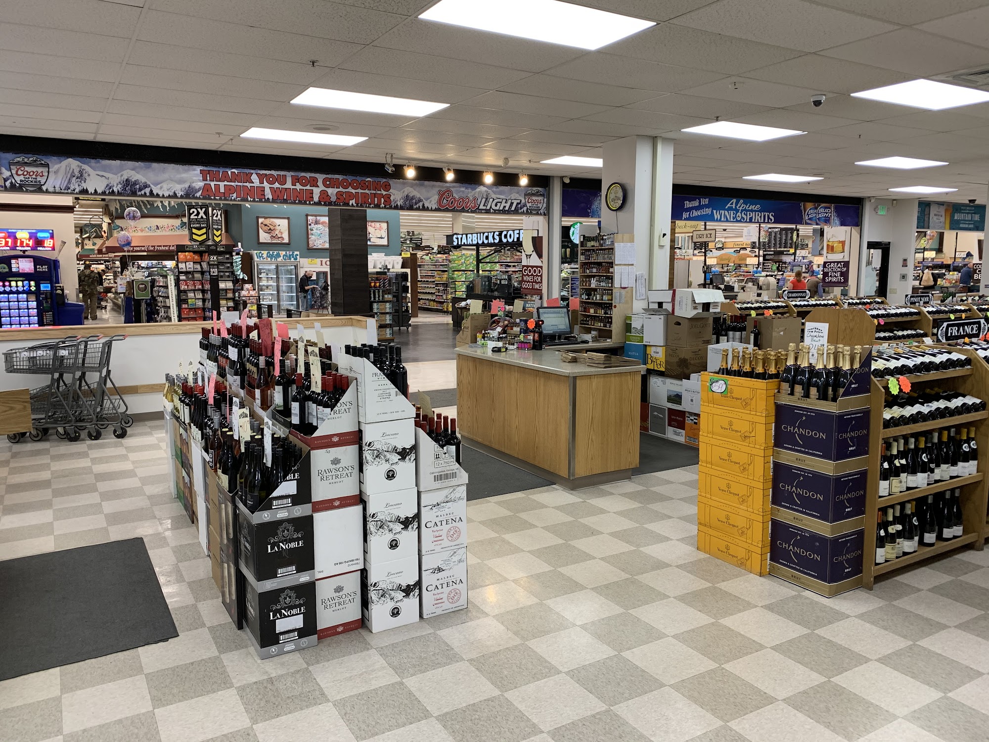 Alpine Wine & Spirits is a trusted local shop for wine, beer, and liquor in the Vail Valley, conveniently located inside Vail's City Market grocery store. The shop has been in operation for 25 years, offering the best selection of wine, craft beers, and liquor, including canned cocktails, premium allocated bourbon, champagne, scotch, ciders, hard seltzers, and non-alcoholic beer. Customers can build their own six-pack or browse the collection for new beverages to try. The staff, including sommeliers, are known for their incredible customer service, product knowledge, and willingness to provide personalized recommendations based on customers' needs and preferences. While some customers have had positive experiences, others have found the staff to be less knowledgeable and the prices to be high. Overall, Alpine Wine & Spirits is a popular destination for wine, beer, and liquor in the Vail Valley.