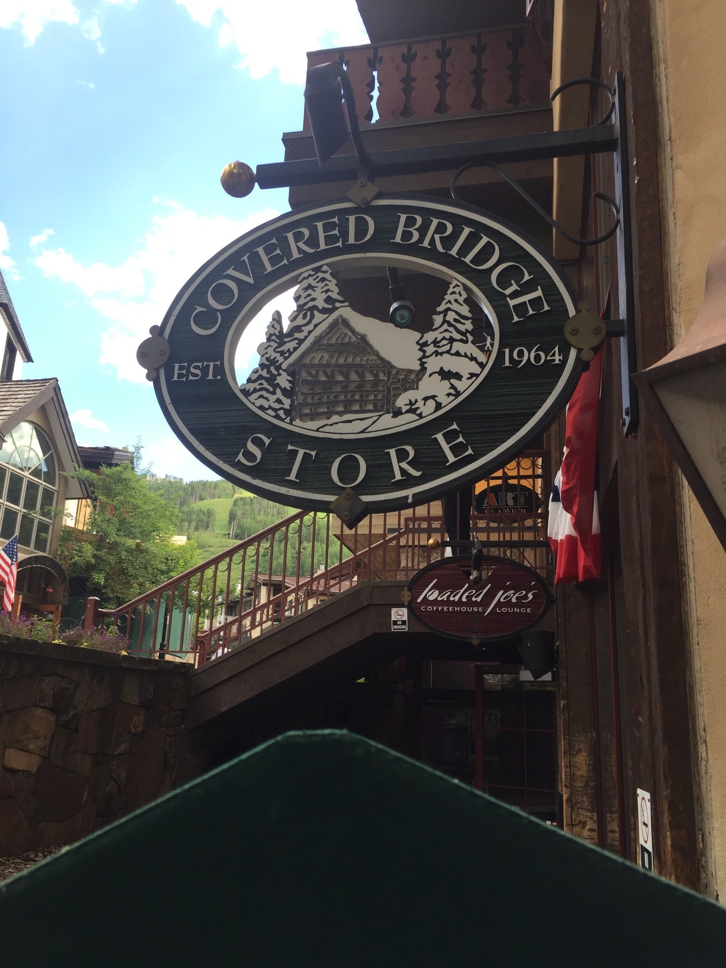 Right in the corner of the famous covered bridge in vail! Photography spot!