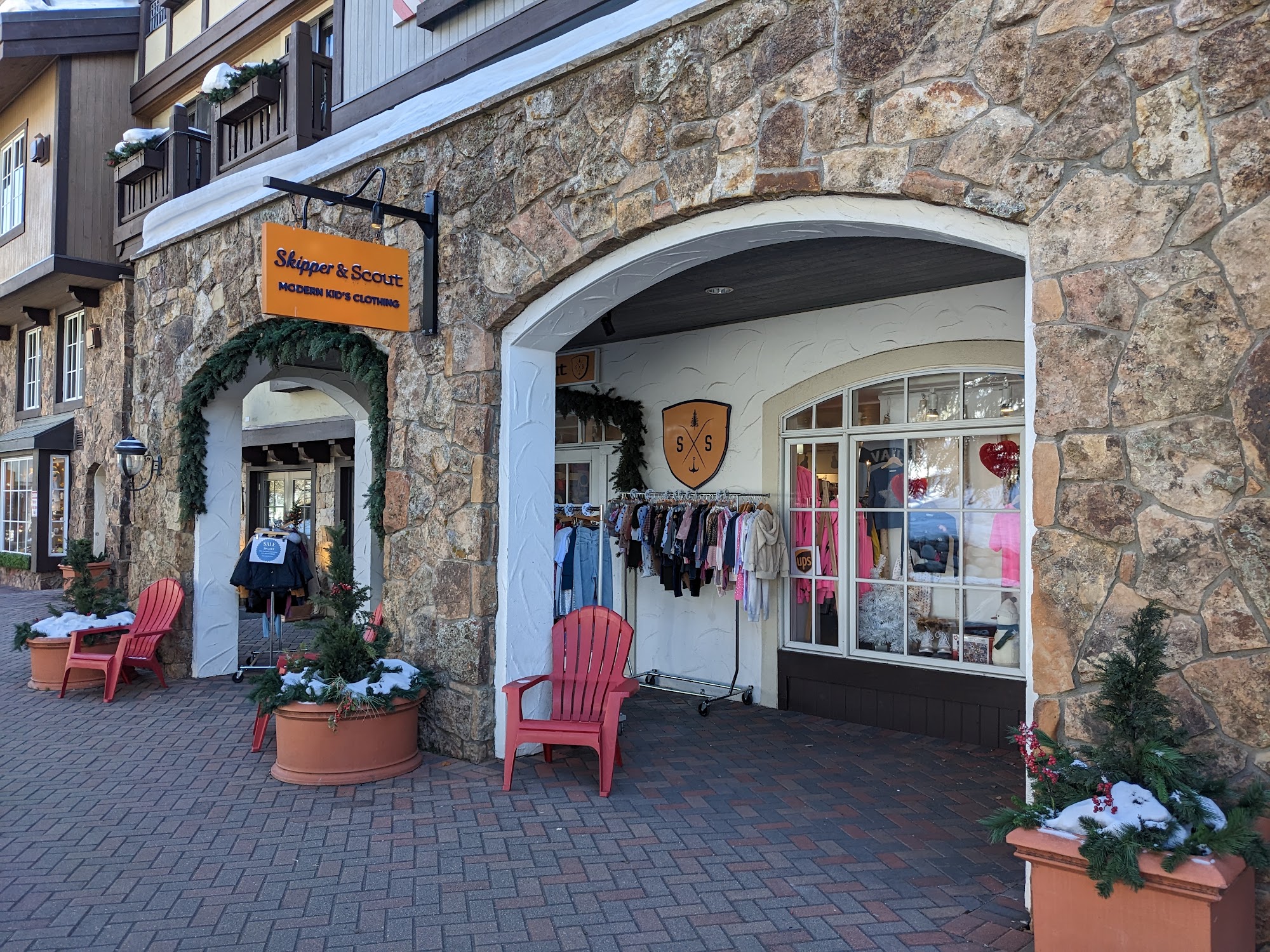Located in the heart of Vail Village, Skipper & Scout is more than just Vail's best kid's clothing boutique. It is a celebration of childhood with a handpicked selection of over 250 brands, including Aviator Nation, Moon Boot, and Rylee & Cru, for every occasion and every size from newborn to 16. The store offers the most adorable and unique children's clothing, accessories, some adult items, and beautiful gifts. The business is known for the best customer service. The owner and employees are incredibly personable, helpful, and bend over backwards to assist, making any process easy. They provide wonderful and highly recommended service. However, be prepared for astronomical prices and sticker shock, which some find an absolute fortune. For those looking to splurge on unique, high-quality, and incredibly cute designs, it is the place to go. Otherwise, it remains a great place for window shopping and a playful experience that delights children and parents alike.