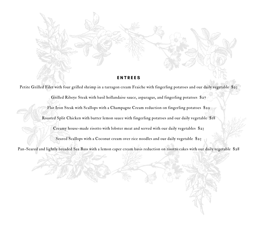 Chicken Florentine super delicious. Tender juicy chicken covered in amazing creamy sauce. Be sure to order a chocolate covered cherry!!! Atmosphere is chill but elegant. Love the decor. Love the historical aspect. Def a place to visit.
