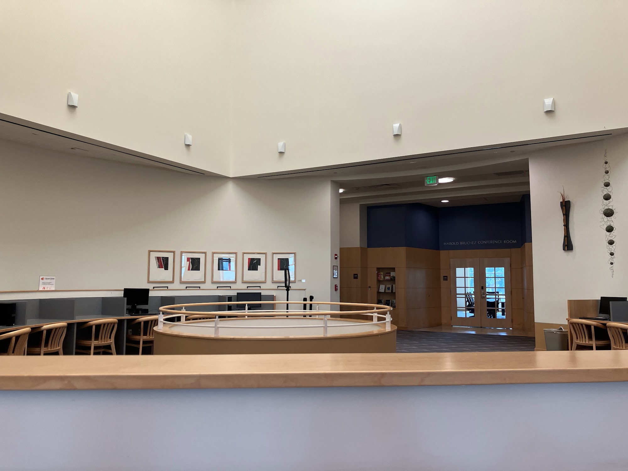 Nice place to sit and read. Great views of the open space and window seats. Nice study or small meeting rooms free and available to the public; most are reservable. Wifi available.