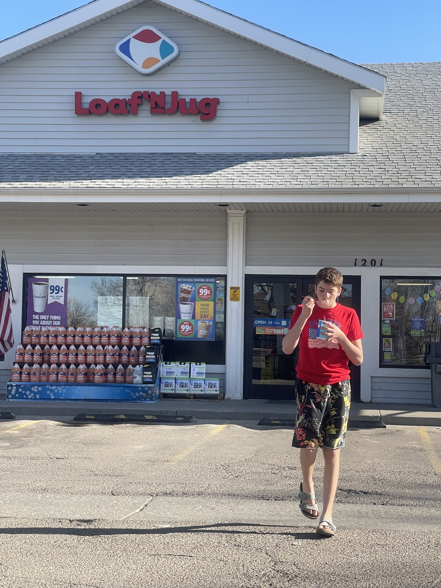 Loaf N Jug is a gas station right off the interstate, making it easy to get in and out of with a light there. The store is clean and the staff is pleasant, providing the best customer service. It offers a lot of typical gas station fare, including slushy type drinks and peppermint hot cocoa, though items can sometimes be out of stock. A common complaint is that its gas prices are higher than other areas, and the posted price can differ from the price at the pump.