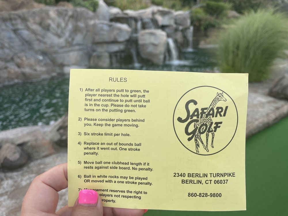 Safari Mini Golf offers a fun and scenic mini golf experience suitable for families and friends. Located atop a hill overlooking the Berlin Turnpike, the 18-hole course features a beautiful layout with animal statues, waterfalls, pools, and gazebos that add a unique atmosphere. The course is well kept, spacious, and provides a challenge that is fun for all ages. It costs $9.50 to play, offering good value for the quality and upkeep of the course. Visitors often enjoy quick and affordable fun, with some noting the course's views and playful design make it a memorable outing. It’s a great place for a family day out, providing a mix of challenge and entertainment, making it highly recommended for those seeking a fun, easy-going activity.