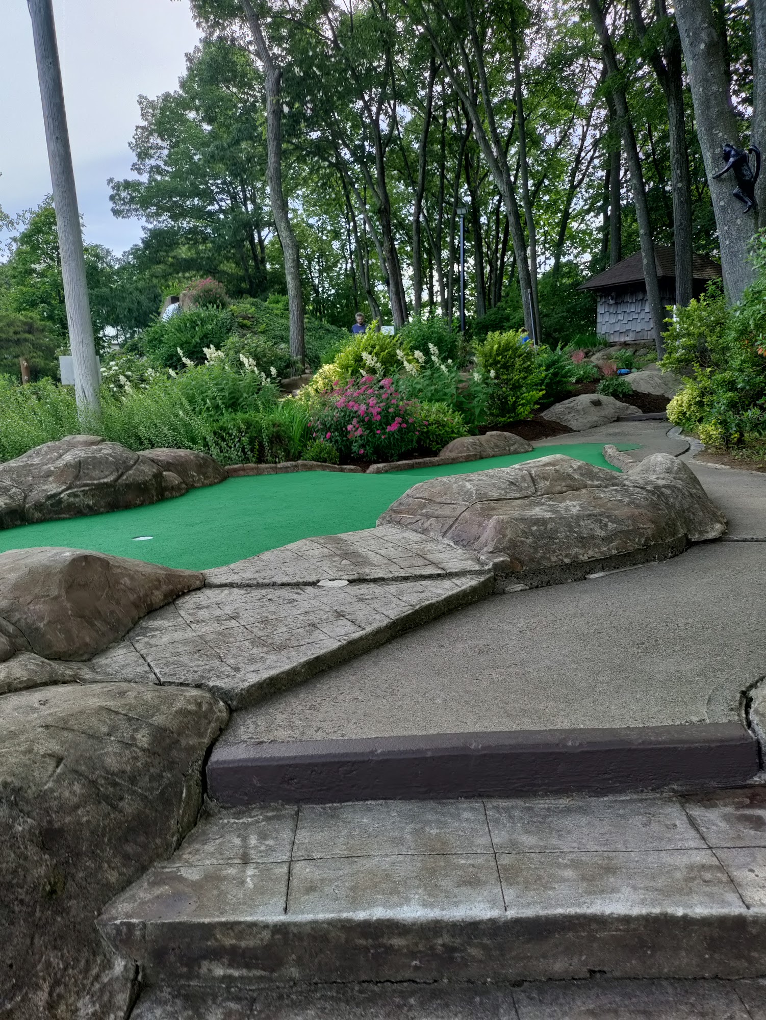 Fun place sits high atop hill overlooking the Berlin Turnpike, 18 hole mini course that wasn’t to difficult but maybe with young children you might be waiting a bit for them to complete a par before moving on to the next , still fun for the family