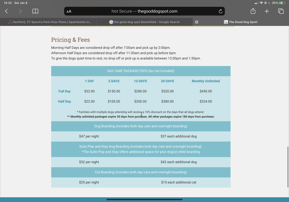 ? HANDS DOWN THE BEST DOGGIE DAYCARE IN CT !!!!!!!! OWNER & STAFF ARE AMAZING AND ACTUALLY TAKE TIME TO GET TO KNOW EACH AND EVERY ? DOG / CAT ? THAT COMES TO VISIT THEM!!!!!!!I LOVE THE GOOD DOG SPOT ?