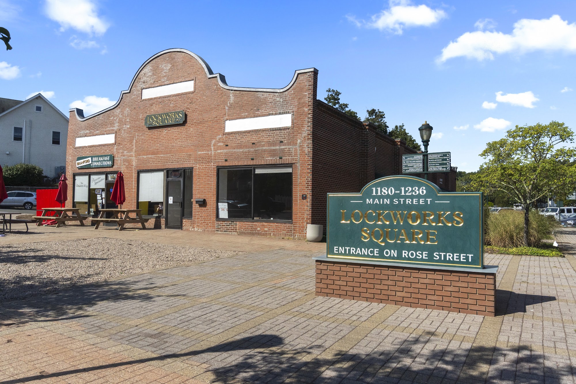 Lockworks Square is a commercial business park in downtown Branford that is home to a mix of retail, office, and medical office tenants. The site was formerly occupied by the Branford Lock Works Company, which was the town’s largest employer in the late 1800s, with more than 500 employees at its peak.