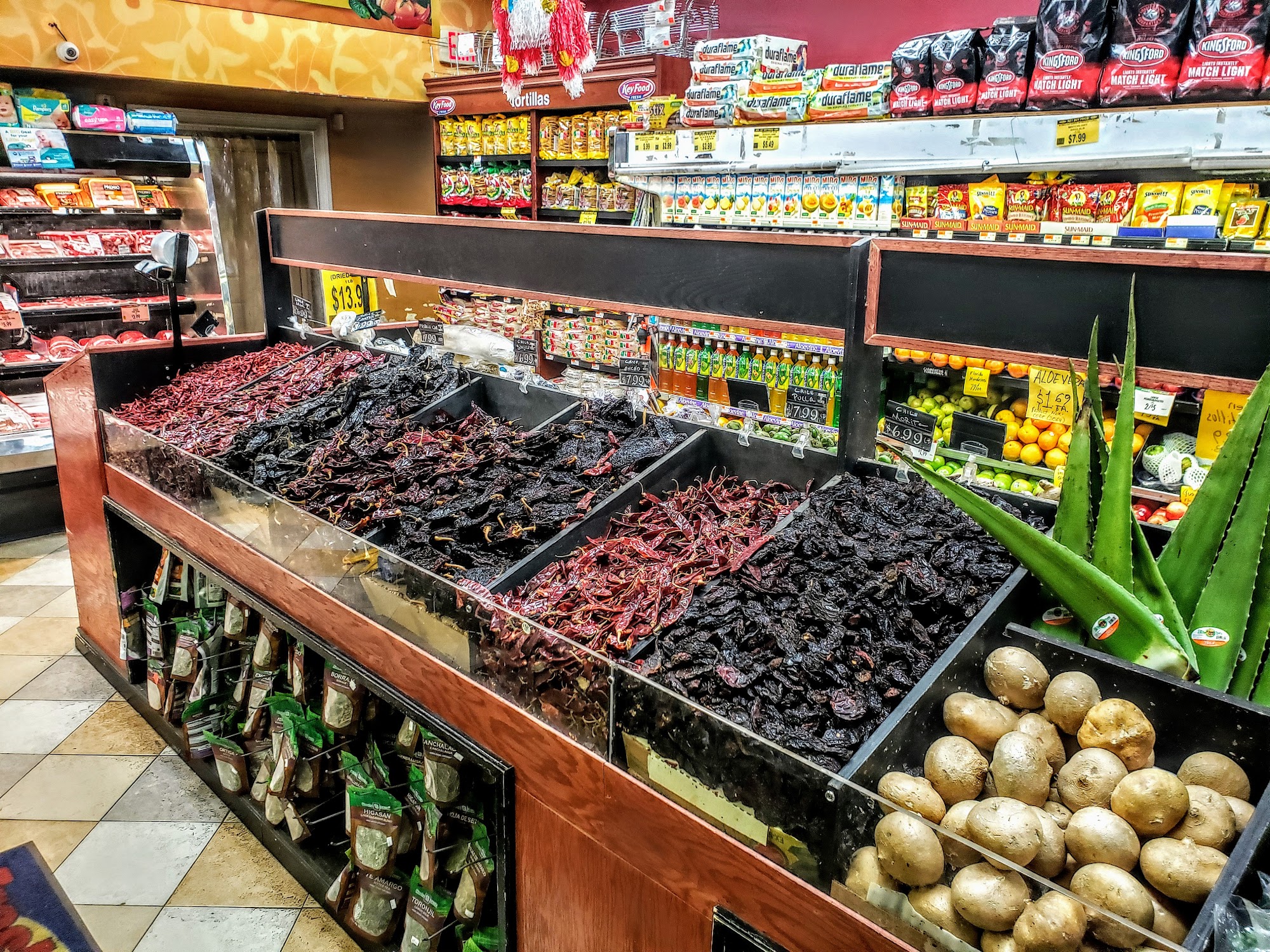 Key foods is a convenient latino style supermarket with great items of food. The deli rice, beans, stew, chicken and a chipotle like order that is packed and good for a perfect lunch less than $10. The meat department and the produce are well packed with cheeses, fruits and vegetables some that are fresh and priced better than the supermarket. Employees speak Spanish and are very helpful, making service great and the supermarket well located. Customers can go to the deli, do a scoop of each items and like a good lunch. Prices are better and the variety is very good.