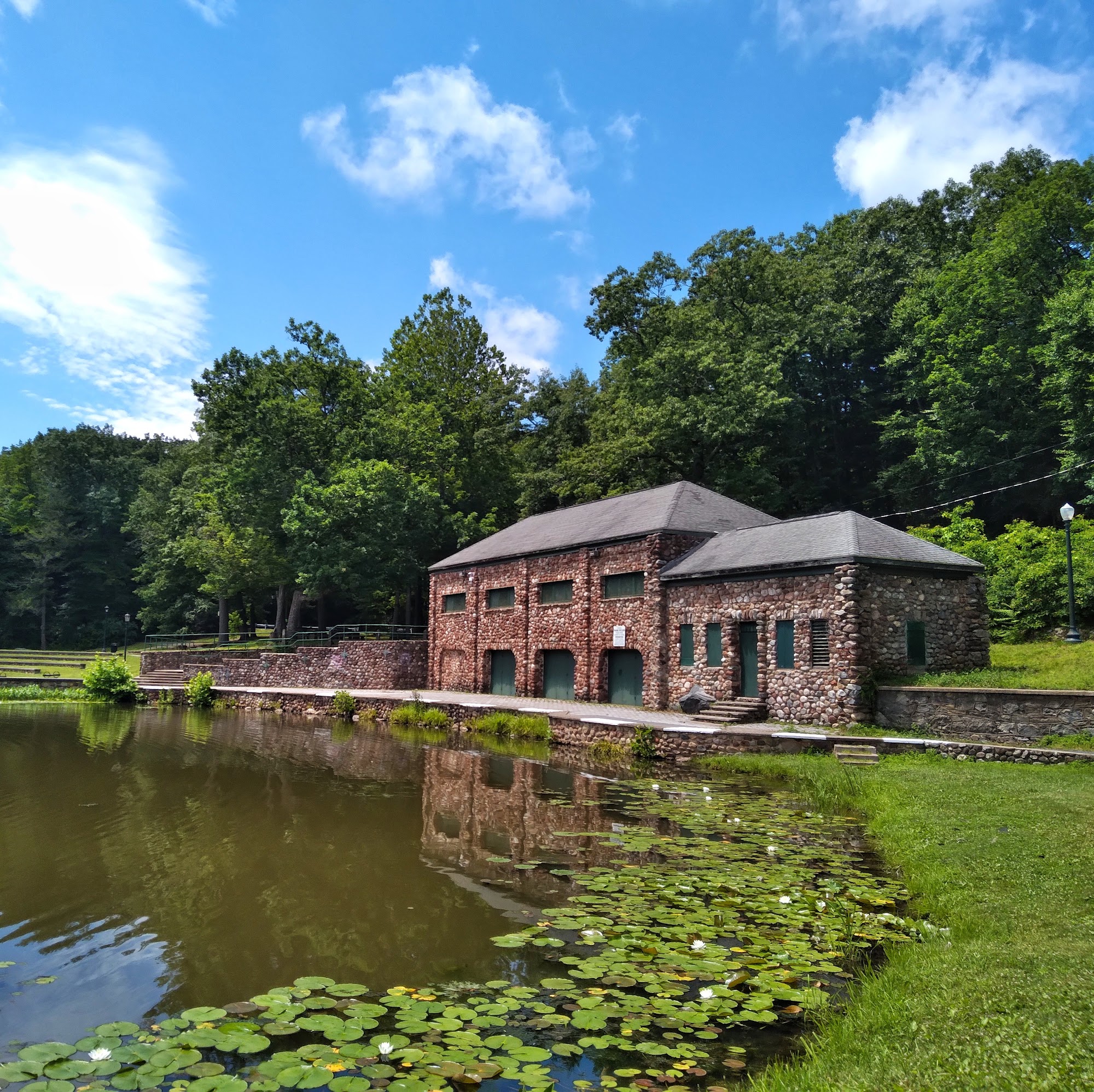 Wonderful park with Brook, board walk, pond, fountain, amphitheater, playground, dog park and nature trails.