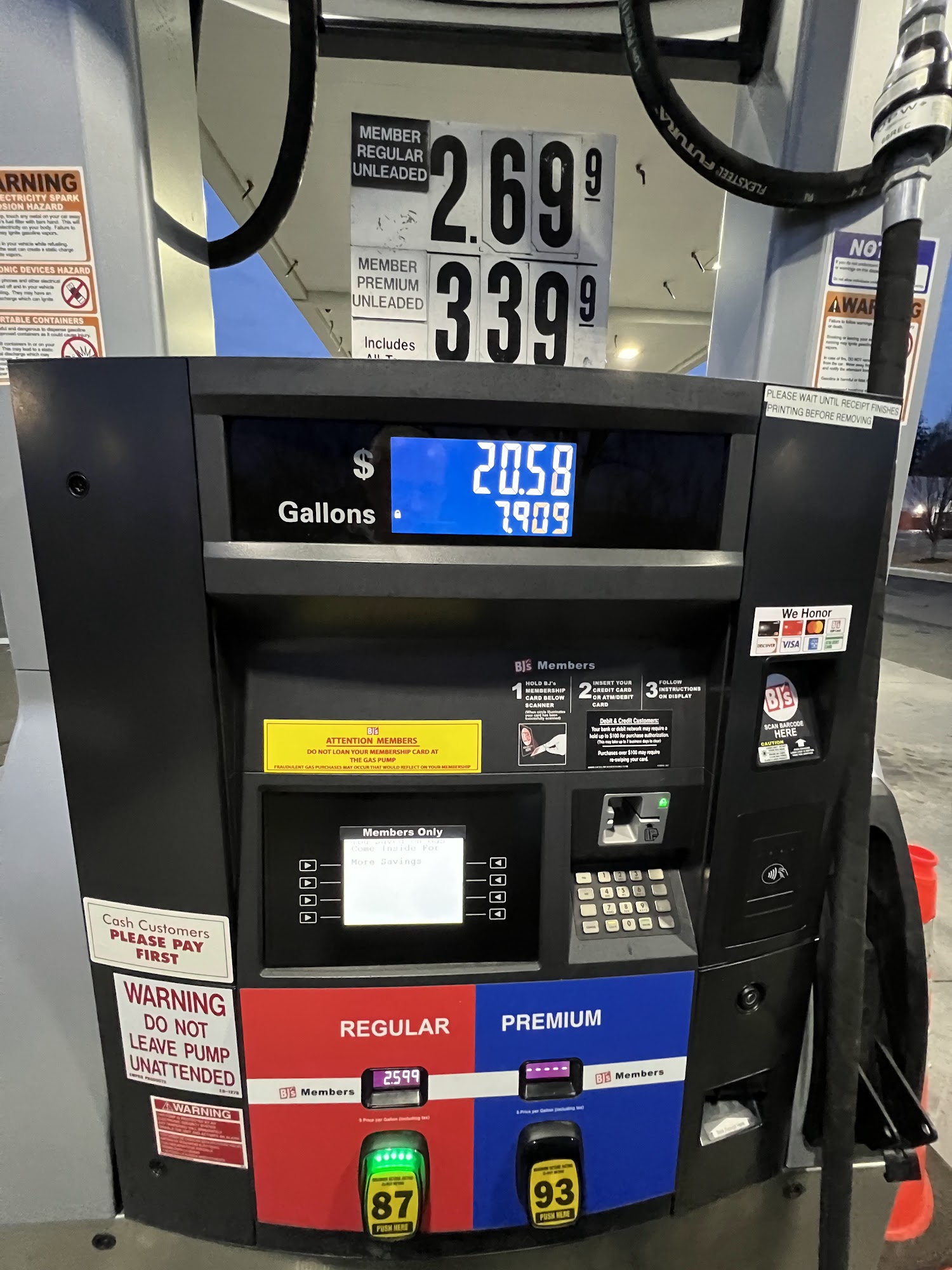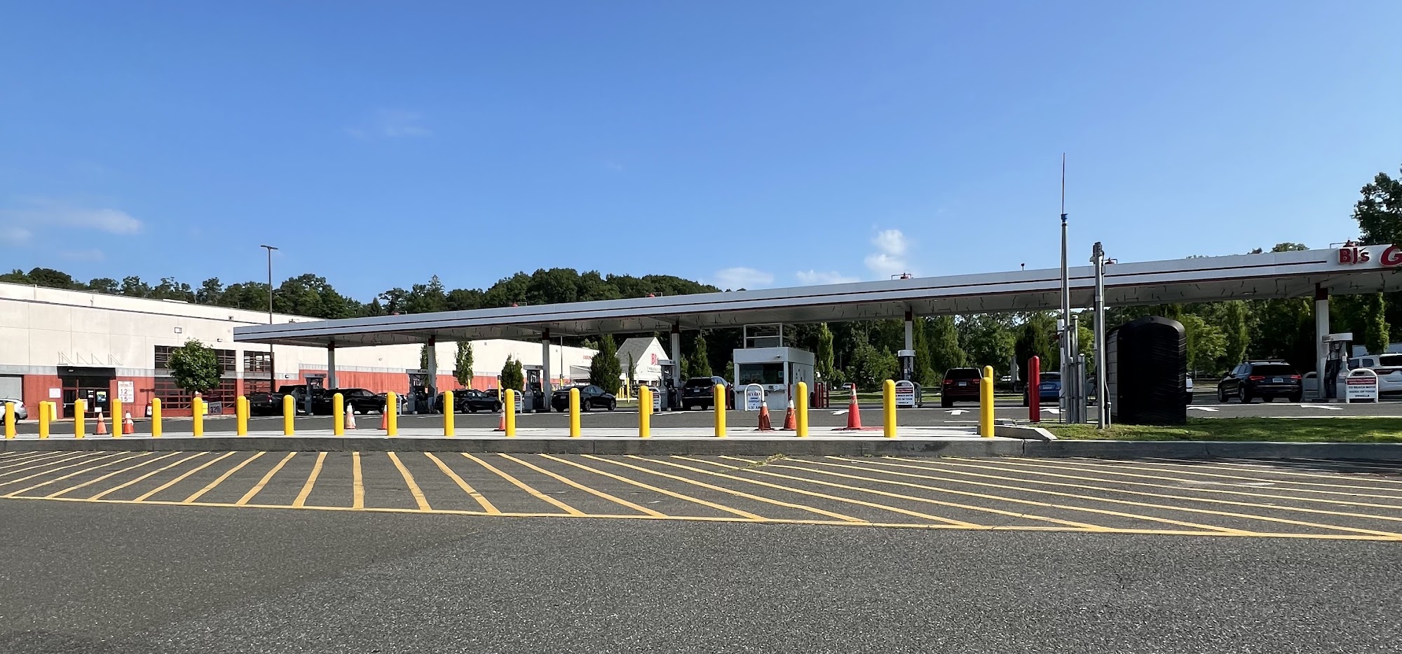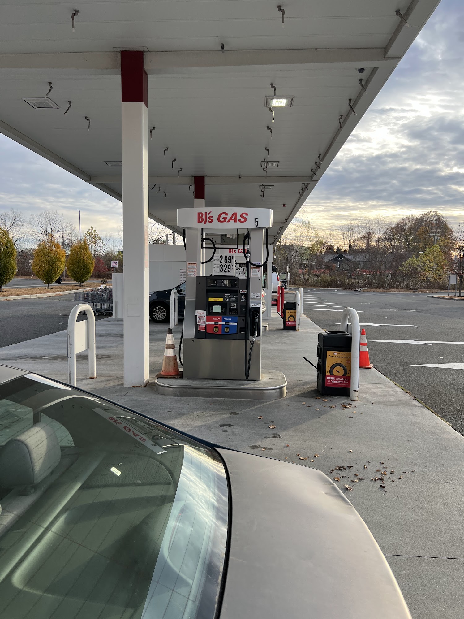 Low prices on gas plus I get 10 cents off per gallon with my BJ ‘s card, can get additional money off with some purchases at BJ’s , easy in and out and has many gas pumps.