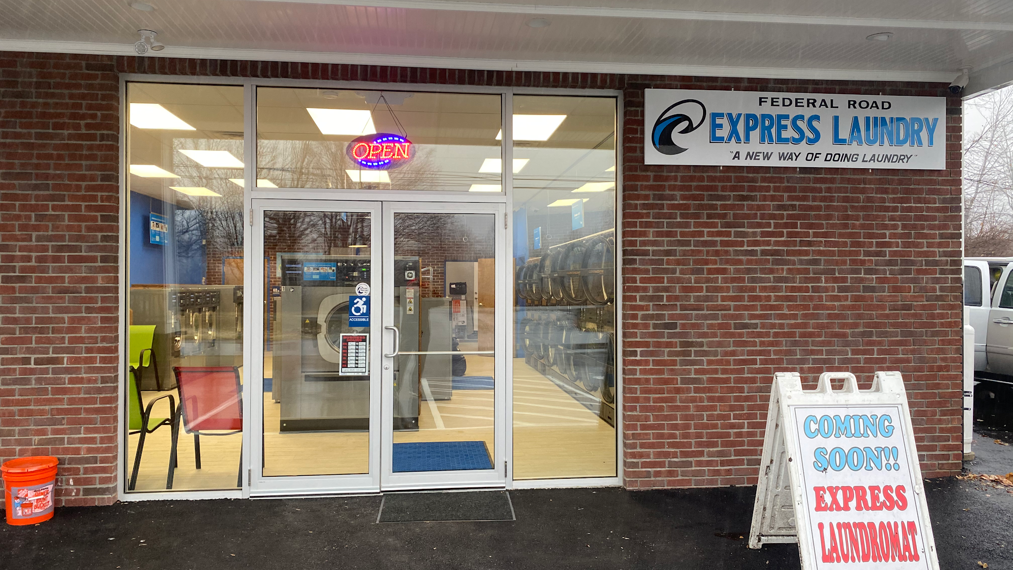 Federal Road Express Laundry is a highly praised laundromat known for its cleanliness and efficiency. Customers appreciate the fast service, with wash cycles taking just 20 minutes and drying completed in 25 minutes, allowing them to finish their laundry in under an hour. The facility is well-organized and features new machines that accept both credit cards and coins. A friendly attendant is on hand to assist, contributing to a pleasant experience. The laundromat offers self-service and full-service options, including wash and fold for an additional fee. Amenities include free parking, Wi-Fi, and vending machines for laundry supplies and snacks. With comfortable seating and adjustable cycles, Federal Road Express Laundry stands out as a convenient choice for all laundry needs.