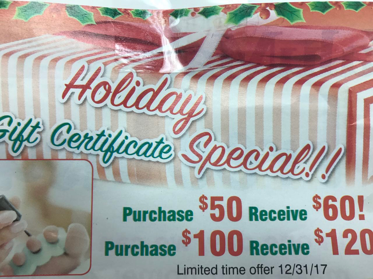 This is the best nail salon in town! I go to Lucy for powder manicure and pedicures. Consistently she does a beautiful job. I get complements on my nails all the time. Relaxing and clean salon.Services: Foot massages