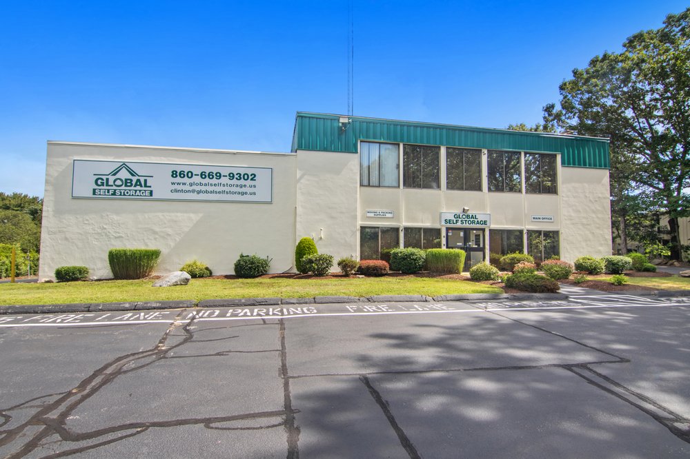 Welcome to premium storage units in Clinton, CT! Whether you’re moving from one home to another, expanding your business, or needing to store a vehicle, Global Self Storage has you covered. We provide climate-controlled storage units for all of your temperature-sensitive household and business items, while our drive-up storage units make loading and unloading easy. We have equipped our facility with security features like 24-hour video security recording and an electronic security gate to give you peace of mind. When your driveway is feeling a little cramped, you can always store your boat or RV in our secure vehicle storage. You can easily rent online or at the 24/7 kiosk at our facility located just off of Old Post Road near East Main St.