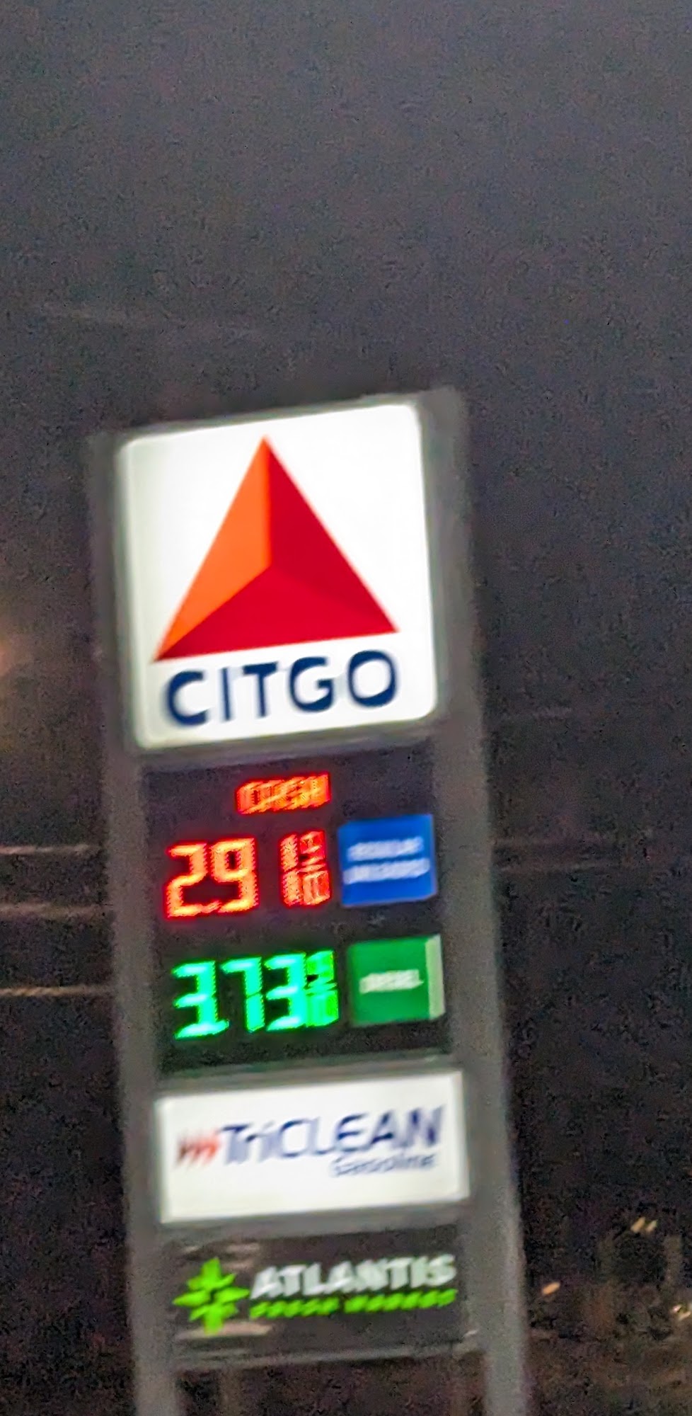 Gas is $2.93 a gallon. They have an amazing selection for drinks and snacks. The place is always busy and I always find a place to park or a gas pump that I can use. This is one of my favorite quick stop stores. The gas station gas price went down a few cents.marlboro cigs are 13.00 and Newport cigs are 13.47.