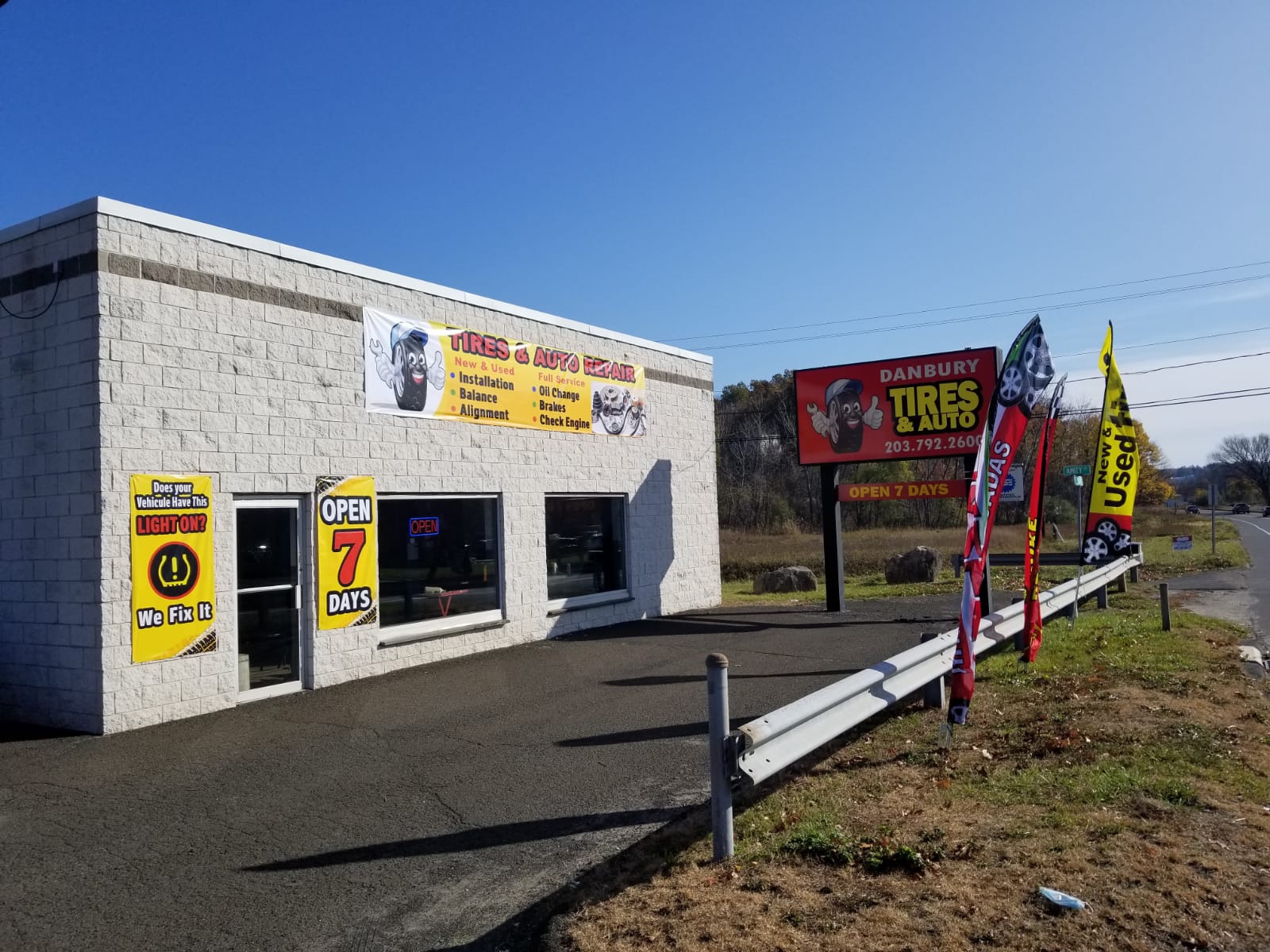 Danbury Tires & Auto is a highly recommended tire shop known for its excellent customer service and quick repairs. Customers consistently praise the friendly and professional staff, who go above and beyond to help with tire issues and other auto repairs. The shop offers a range of services, including new and used tires, wheel alignment, brakes, oil changes, air conditioning repair, tire fixes, and wheel balancing. Many reviews highlight the quick turnaround times for drop-in services, making it a convenient choice for urgent needs. Customers have shared positive experiences, such as prompt tire replacements even late on weekends and thorough examinations that led to efficient repairs at reasonable prices. Overall, Danbury Tires & Auto is recognized for its commitment to quality service and customer satisfaction, making it a trusted option for anyone needing automotive assistance.