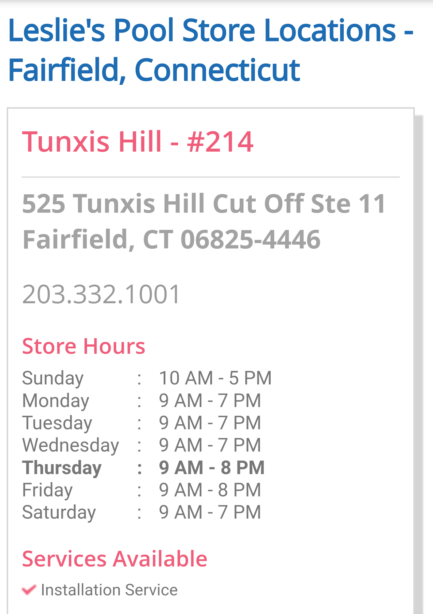 Leslie's is a trusted neighborhood pool store in Fairfield, Connecticut and a go-to destination for all things pool and spa. It offers the best selection of chemicals, equipment, cleaners, accessories, and toys. Customers can count on complete pool care, including free in-store water testing, free cleaner inspections, and free in-store labor on repairs. The staff is described as patient, knowledgeable, ultra friendly, and willing to assist, providing great advice and great customer service. The store offers the highest quality products and quality service with quality prices. It is noted as the place to be for all pool and hot tub needs.