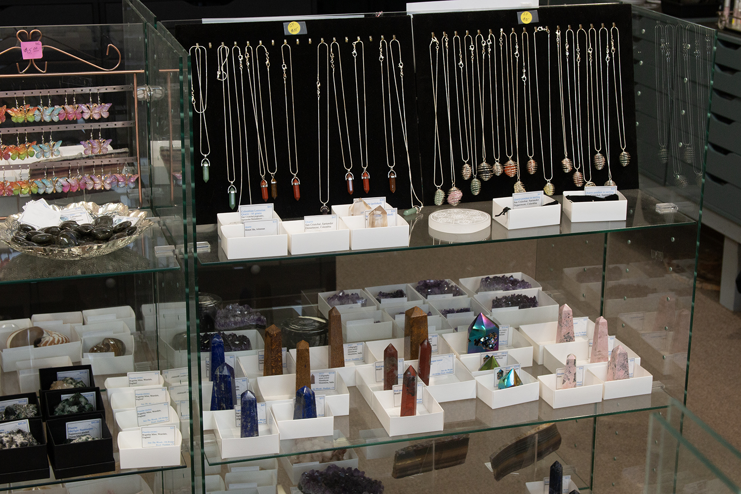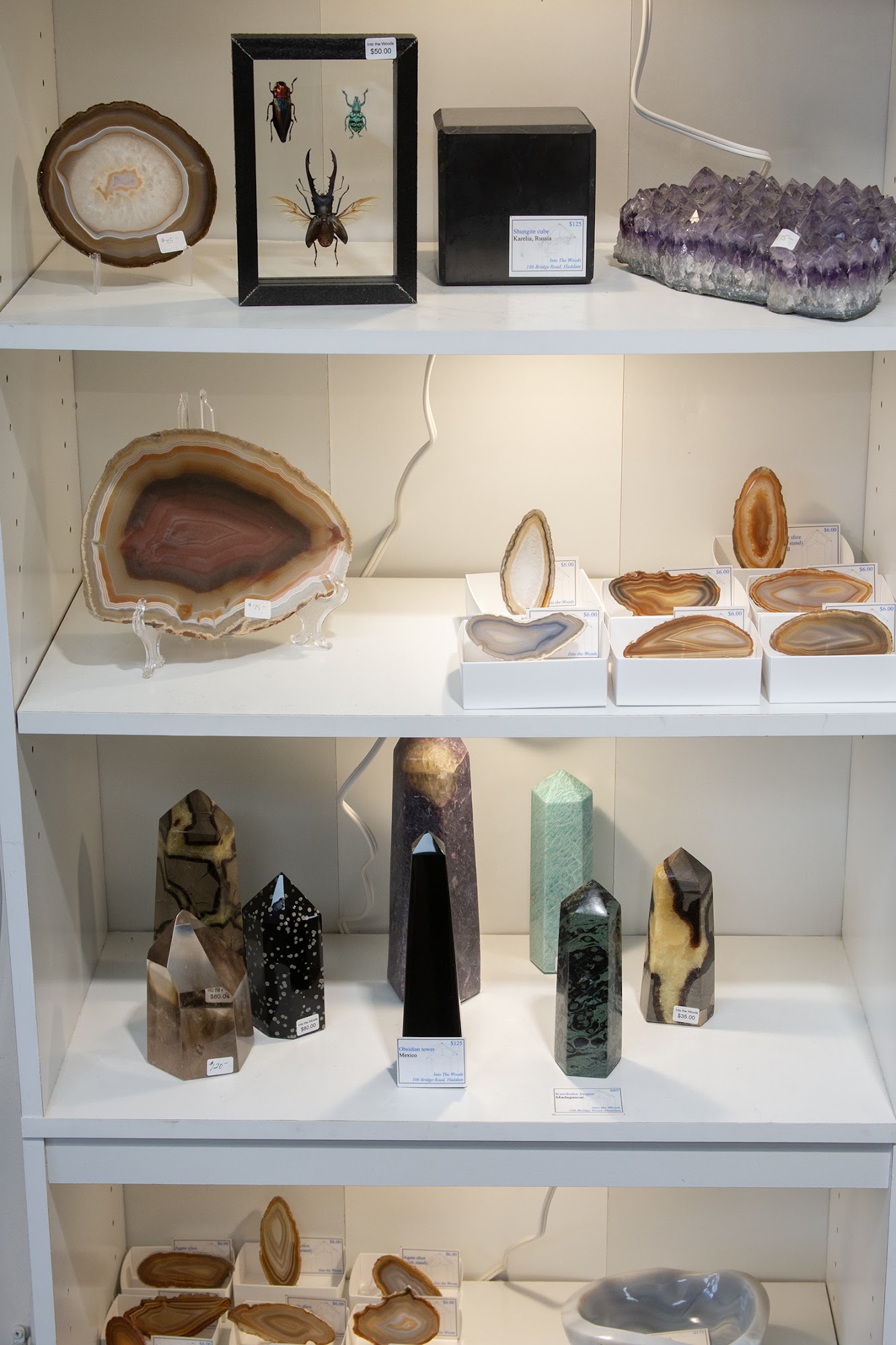 Into The Woods is a unique gift store inspired by nature, offering a wide range of items including geode cracking, framed butterflies, crystals, fossils, and jewelry. The shop is kid-friendly, allowing visitors to hold a fossil dinosaur egg and explore stunning aquamarine crystals found in Connecticut. Customers appreciate the attentive and knowledgeable staff, who create a welcoming atmosphere, making repeat visits common. The owner’s passion for the craft is evident, providing a fun and interactive experience where nearly everything can be touched and explored. Visitors marvel at the vast collection, which includes petrified wood, shiny crystals, and unique specimens that spark curiosity. Many describe their experiences as enjoyable and recommend the store for families, collectors, and anyone interested in nature-related items. With a variety of stones catering to both beginners and high-end collectors, Into The Woods stands out as the best mineral shop in Connecticut. It is considered a hidden gem, attracting those looking for beautiful and affordable pieces, making it a must-visit destination.