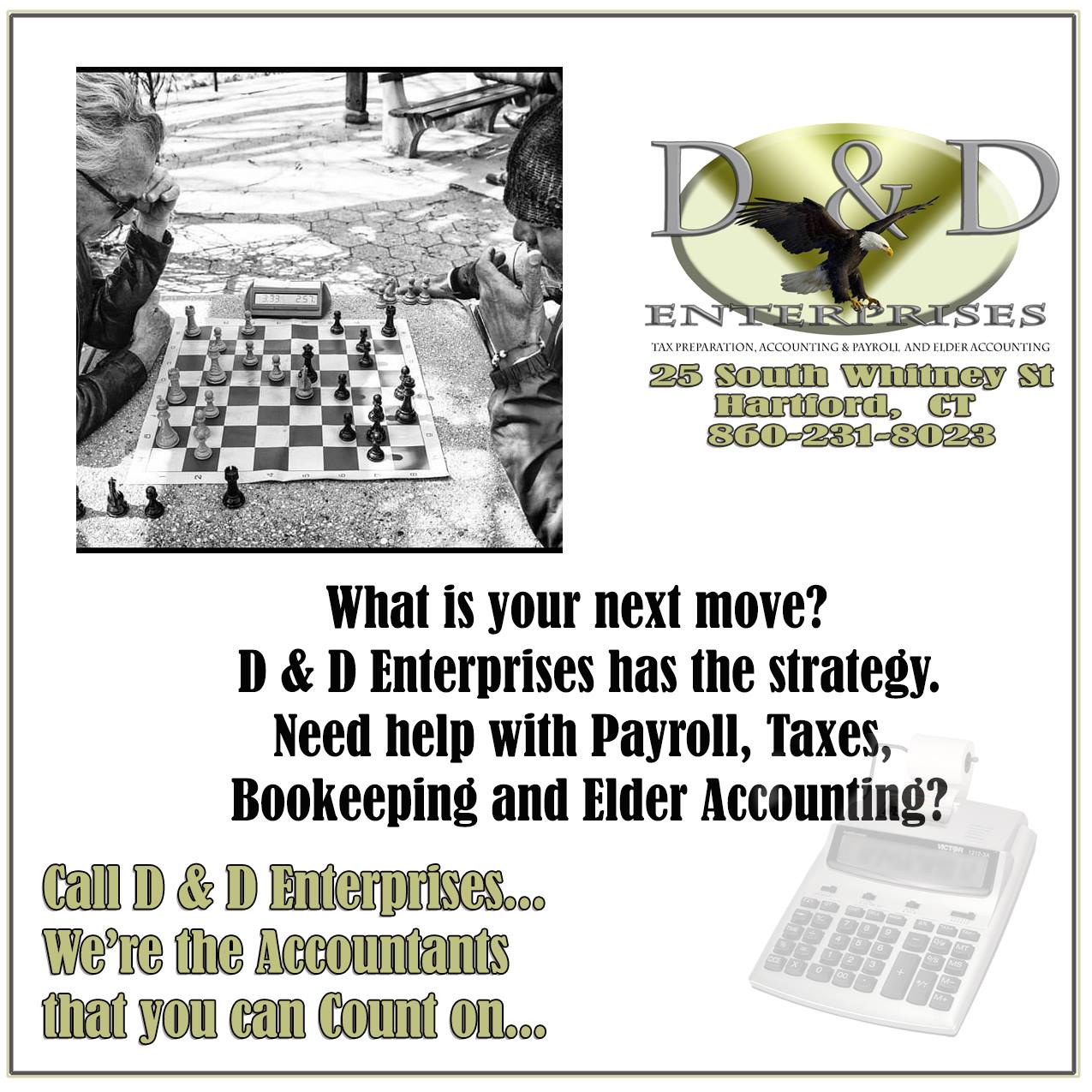 Honest and reliable tax preparation! I would HIGHLY recommend D&D to friends and family!