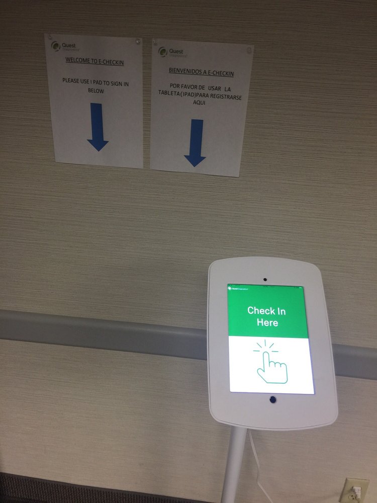 This is the only Quest center that I have seen that has a self check-in machine which definitely made the front desk look very deserted. After you complete your check-in, your wait time shows up on the television screen which I thought was very neat. Overall a good experience and friendly staff.