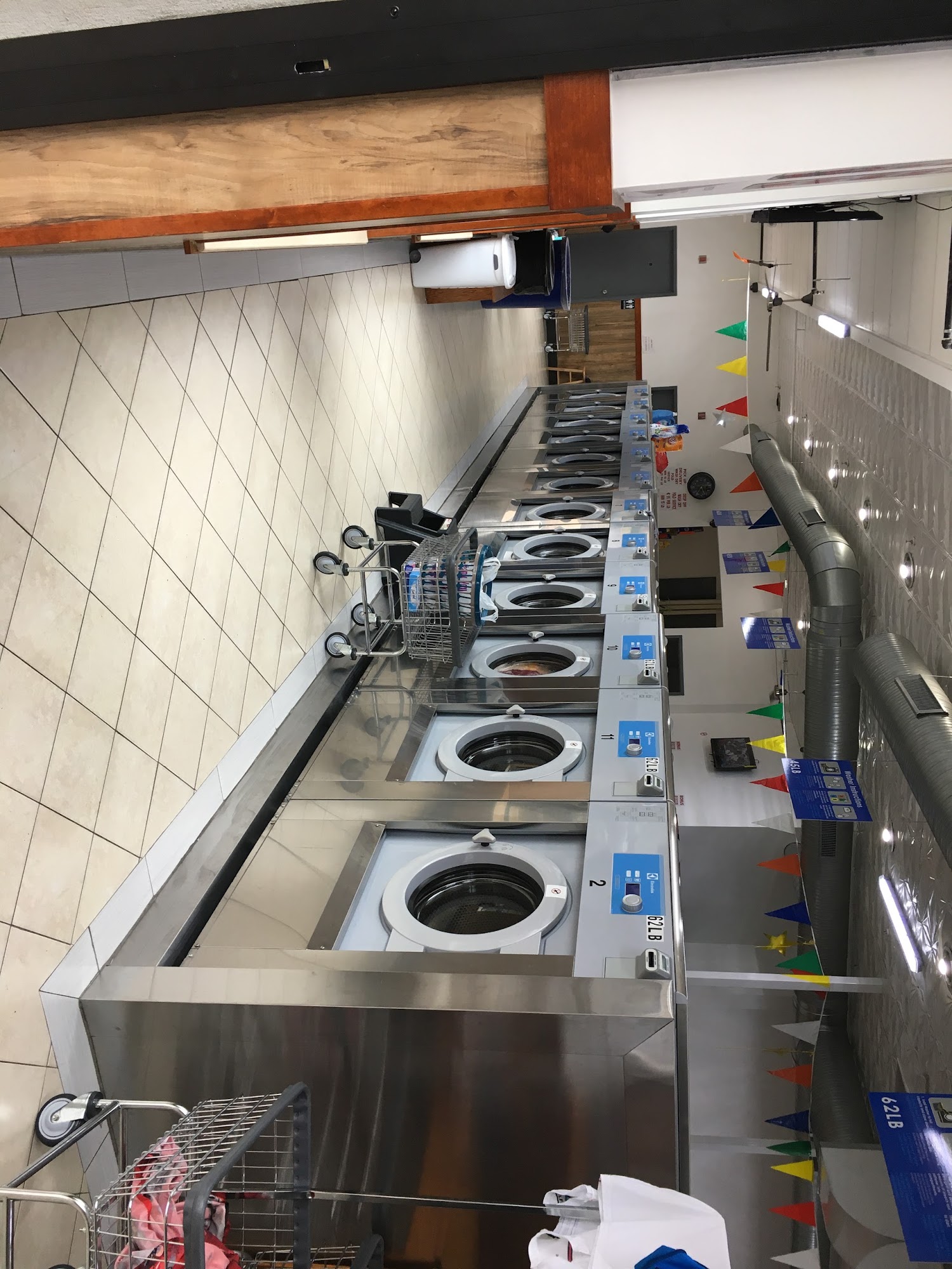 What can I say ...its clean , it's spacious and the machines are huge enough to was your clothes comfortably. Also not bumping into each other to get about. The place to do your laundry is there. I travel from Bloomfield to there to get my comforters washed.