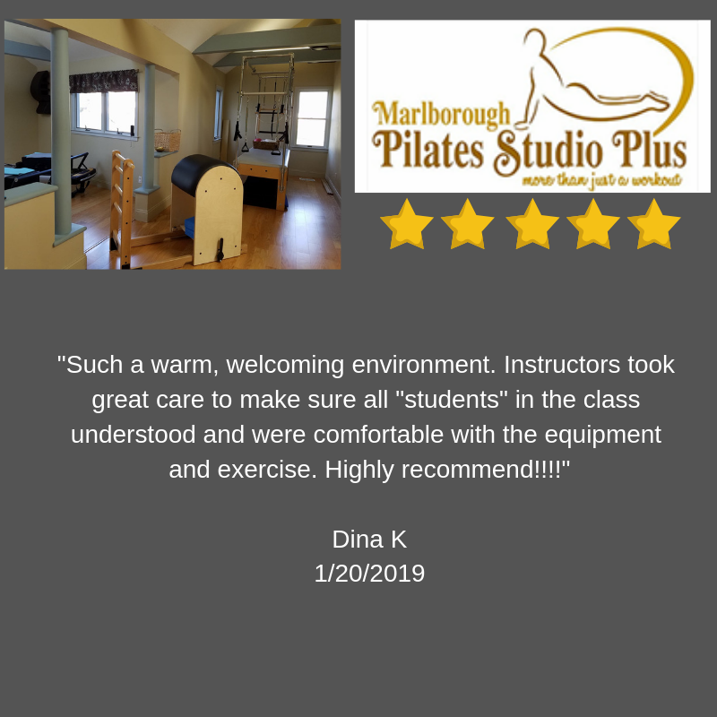 Best Pilates studio in the area! Marlborough Pilates has the best teachers and the best clients. This is a great place for exercise, fun, feeling good and making friends.