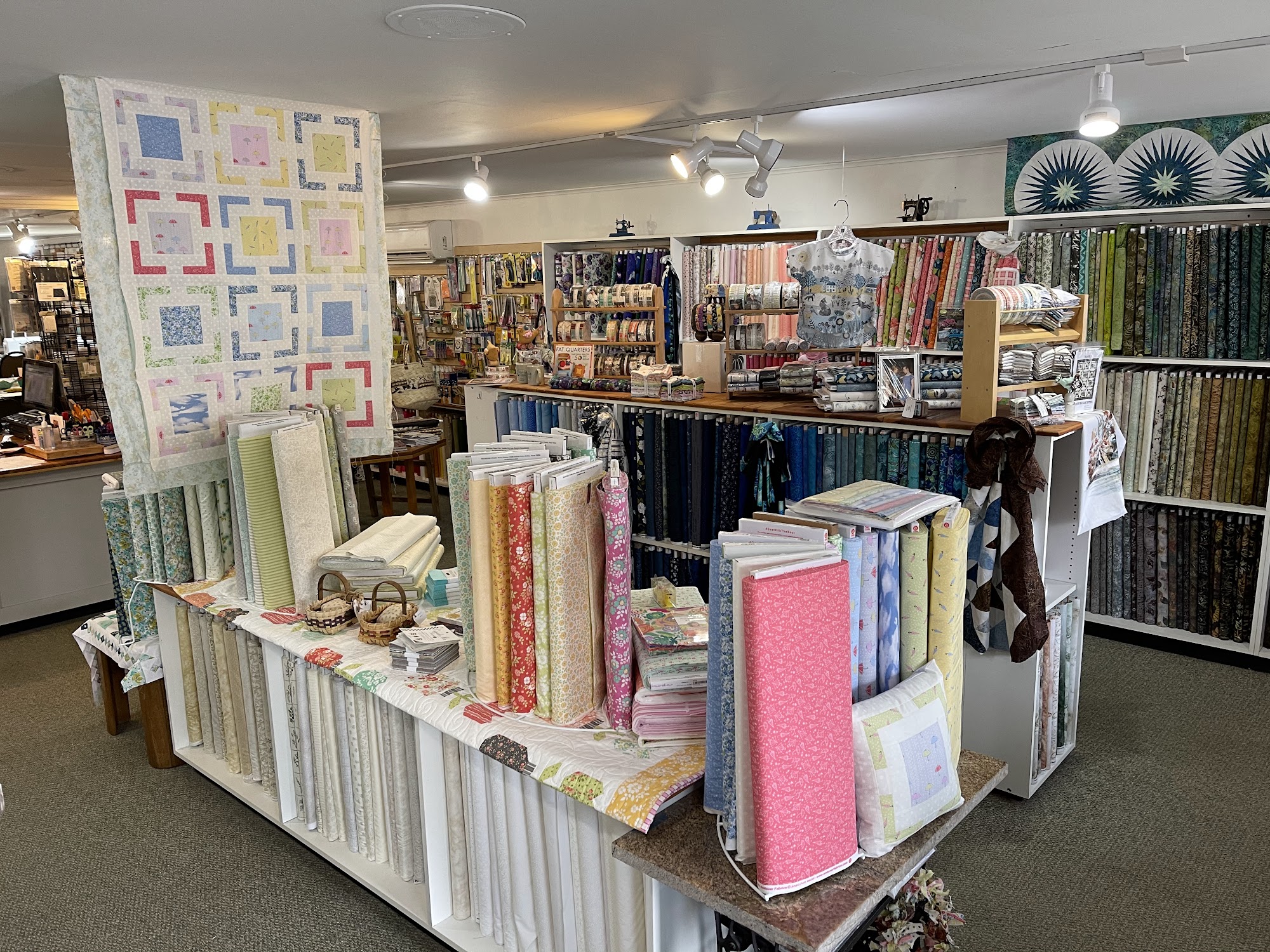 Fabulous shop with lots of beautiful fabric, notions, and supplies. Even better than the items, are the amazingly supportive and friendly owner and staff. Many classes (from beginner to advanced) and open sew times on Wednesday and Thursday (signup required). Wonderful place to meet other quilters