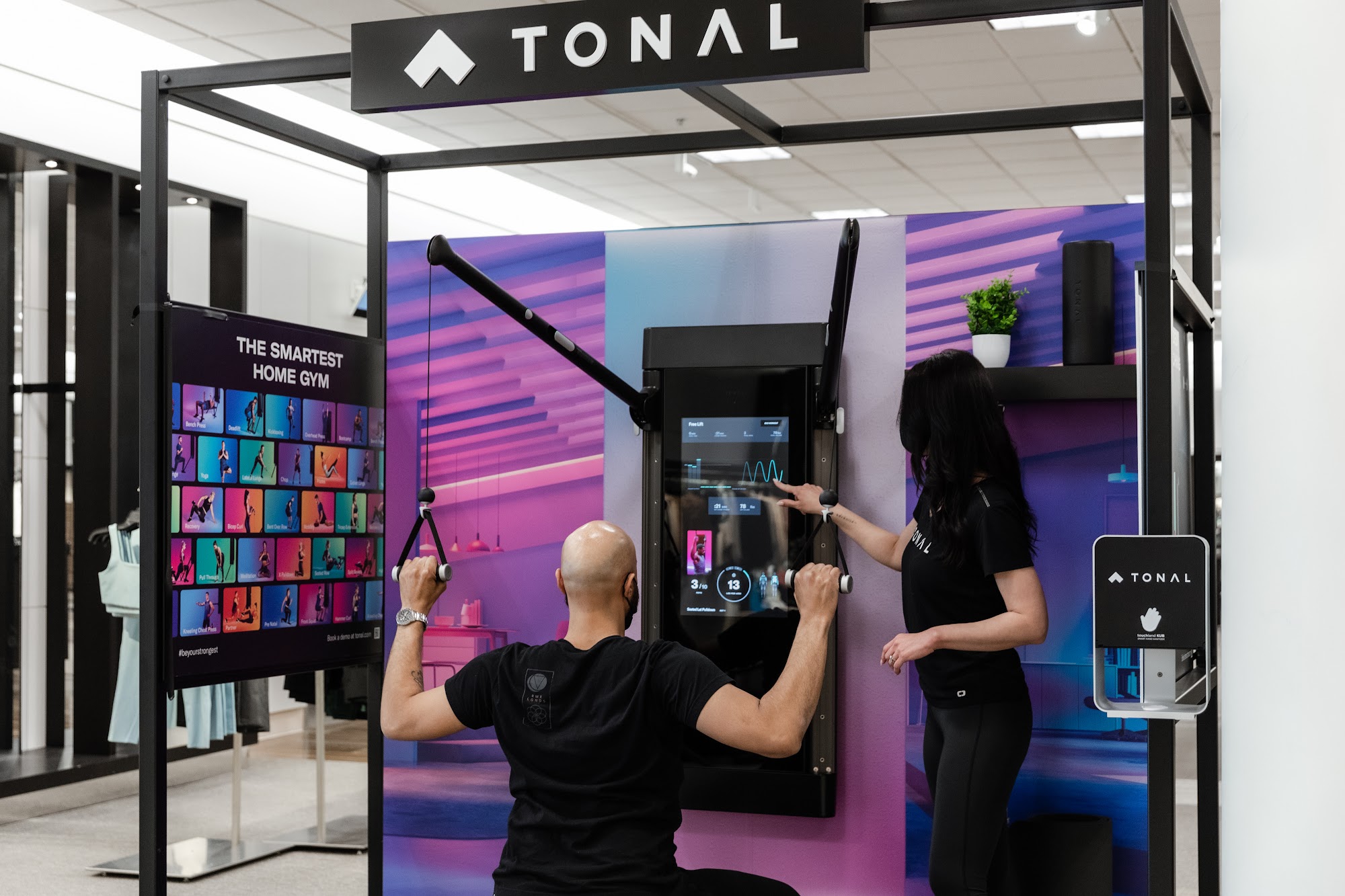 Tonal - The Smartest Home Gym Tonal combines expert coaching with revolutionary equipment to be your best personal trainer and at-home gym. Choose from strength training, cardio classes, yoga, and more based on your goals. By using a proprietary digital weight system instead of metal weights, Tonal can generate 200 pounds of resistance and replicate every machine in the weight room with a fraction of the equipment. That means you can exercise your full body—from legs to biceps—all with one device. Come in and experience Tonal and check out their expert-led programs powered by digital weight. You can make a quick stop to feel the smoothness of digital weights or do a full-body immersive workout — whatever works best for you.