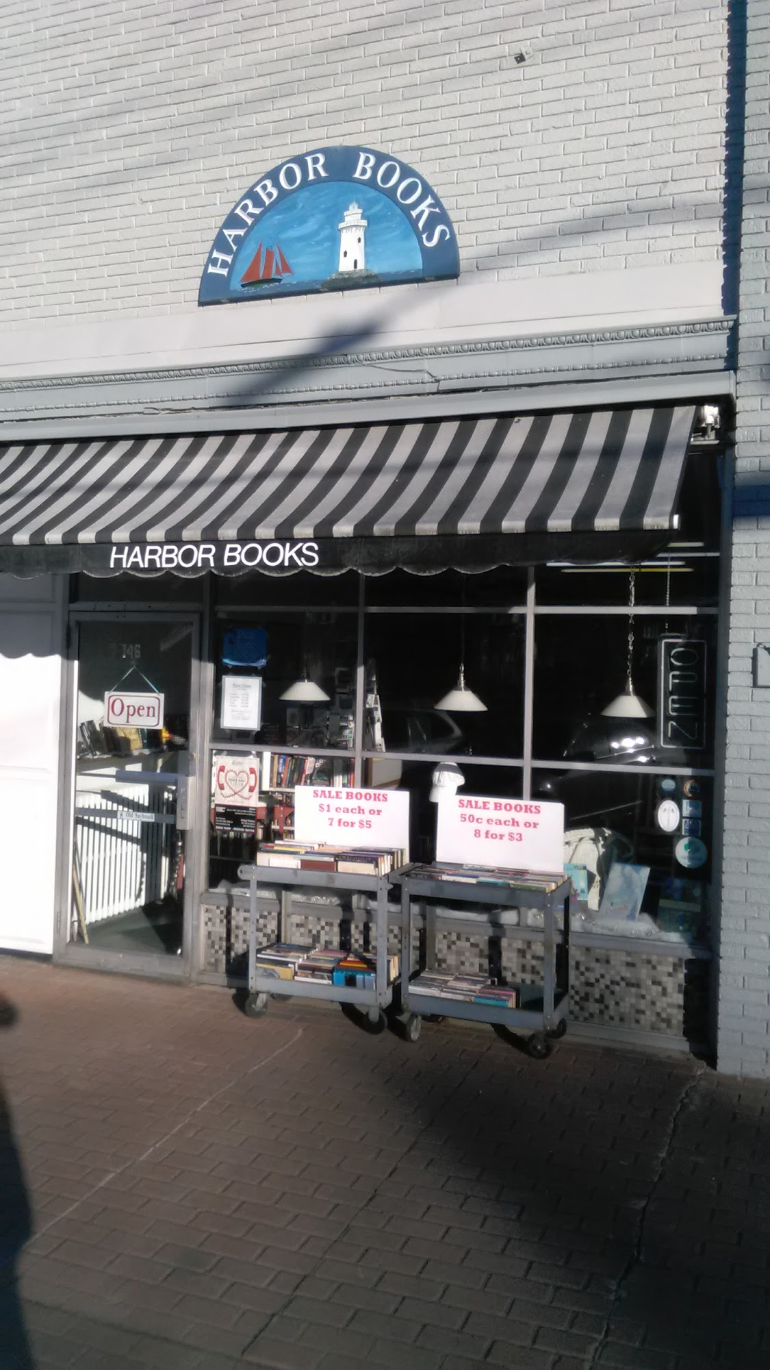 Harbor Books is an independent, locally owned and operated bookstore that has been in business since 1988. It sells new and used books on all subjects in a small, cozy, neat, and organized space. The store is not very wide but is long and tall, with tightly-packed shelves holding a huge selection across every genre. It features an interesting nautical section and a wide selection of books on Katharine Hepburn, a lifetime Old Saybrook resident. It is also a source for local interest books for genealogists, historians, and visitors. The store carries a great selection of titles, including vintage and antique books, many in excellent condition and marked with a great price. There is a unique one-dollar bin for books on sale. Prices are written on the inside cover of books, and they are known for having excellent value. The store also has a display of scouting materials in the back, serving as the local supplier for Girl Scout items, and carries a unique line of Old Saybrook branded clothing. The staff is noted for being super nice and helpful. With its vast and varied collection, visitors often find themselves needing significant time to explore, potentially discovering special or unexpected books that feel like they were waiting just for them.