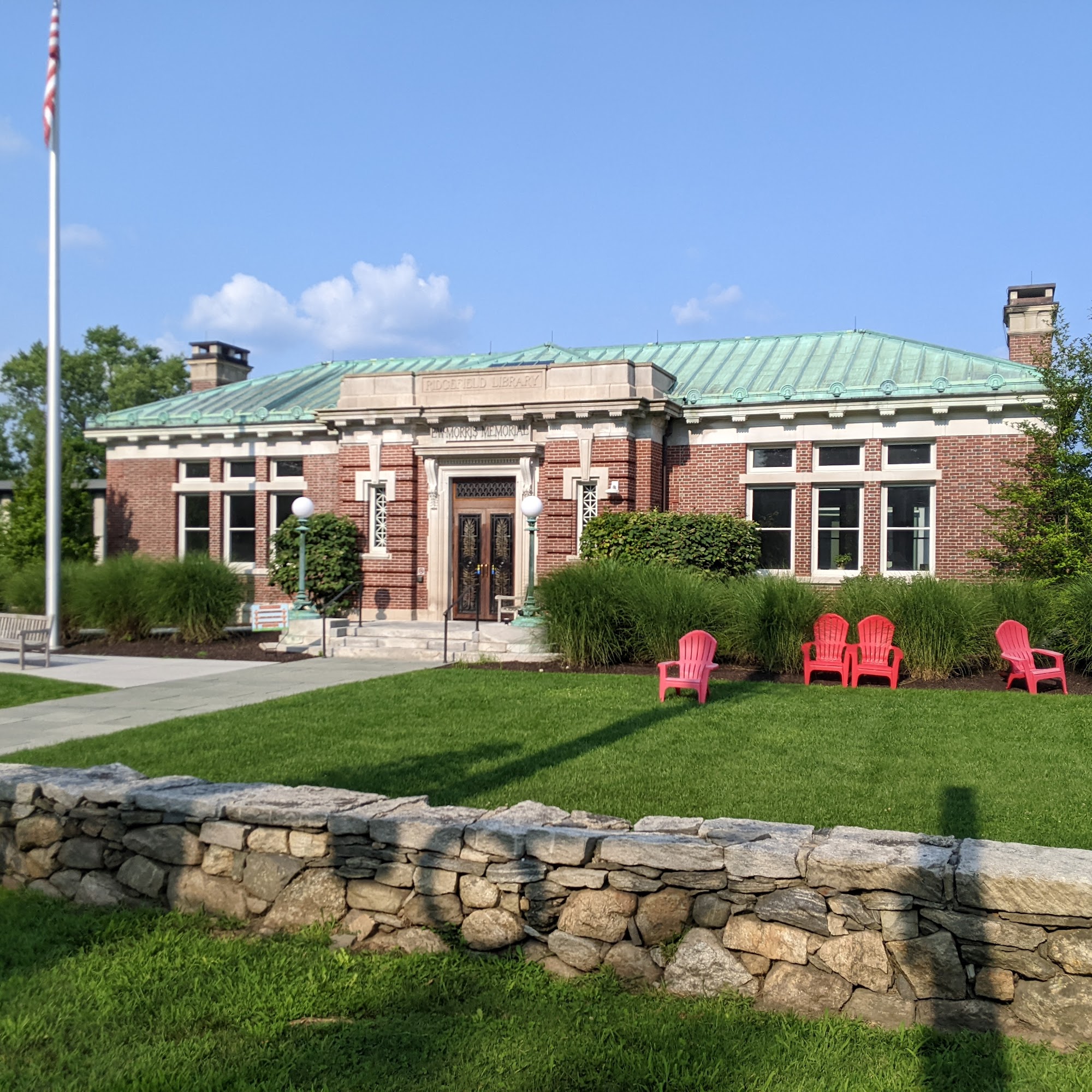 Ridgefield Library is a very big and nice town library located on Main Street. It is a real treasure with a park in front and many restaurants nearby. The library offers a lot of different types of books, a children's library, a teen room, and a makers/STEAM room. It has many computers, printers, Circuit machines, a CNC, and a 3D printer. The library organizes many activities and public events for all ages. It provides a lot of sitting area, though it could use more seats for studiers.