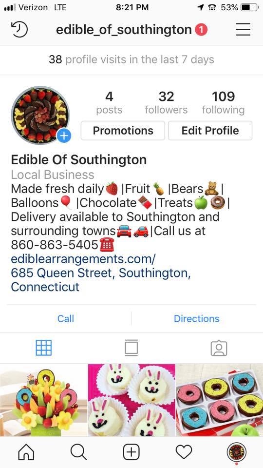 This specific edible arrangements is always so nice!! I like that they make everything fresh and that nothing is sitting around all day long waiting to be sold, I usually call about 45 minutes before I arrive and tell them what I want and its always ready to go!! The staff is also so sweet!!