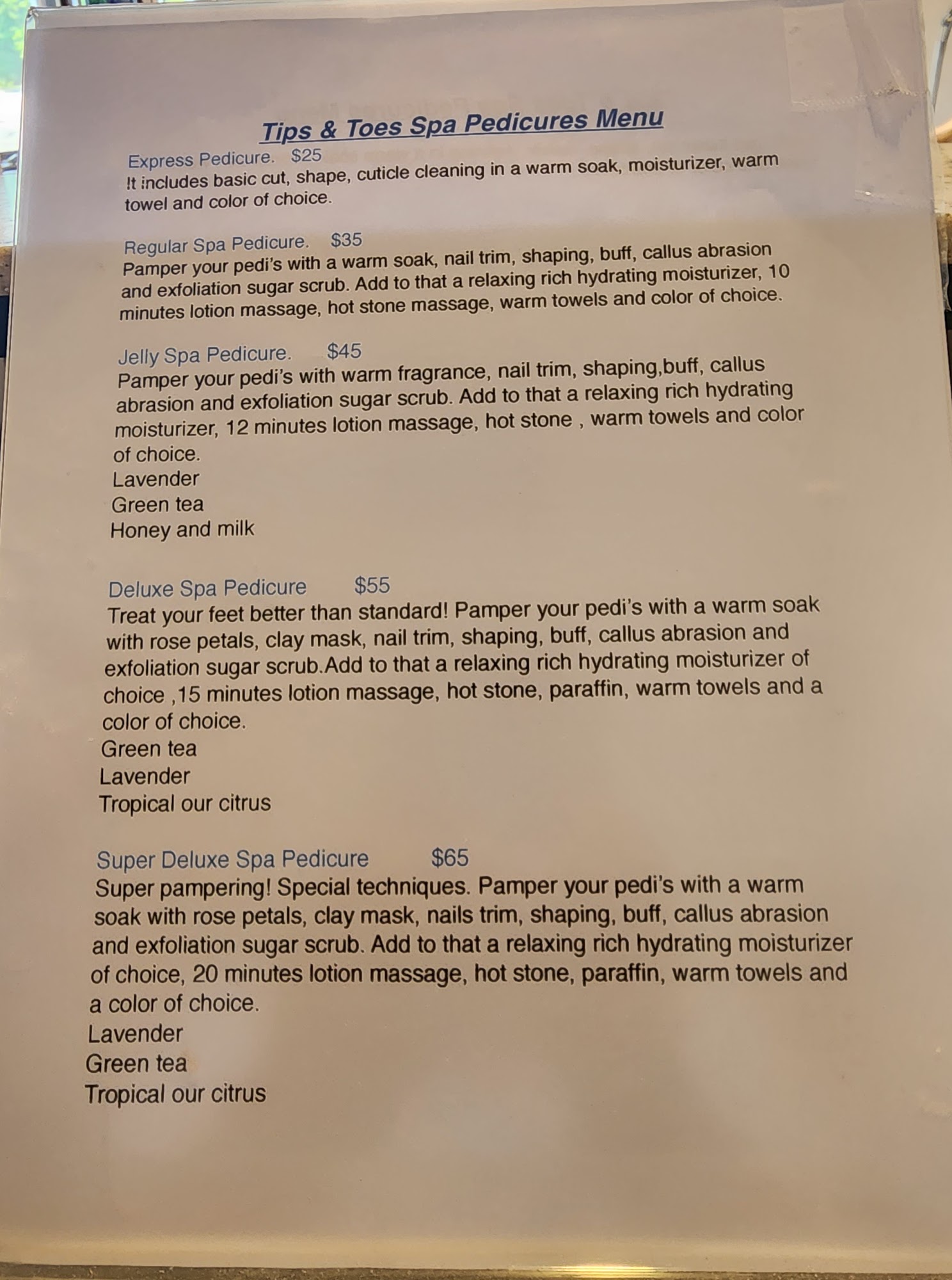 Tips & Toes Spa provides exceptional service and quality treatments. The staff is friendly, welcoming, and respectful, ensuring clients feel valued and cared for. They offer great pedicures, nail painting, and other services, all done with attention to detail and a focus on hygiene. The spa's clean and relaxing atmosphere makes it an ideal spot for individuals and couples to unwind and enjoy some pampering. Customers appreciate the fair prices and the staff's dedication, often going above and beyond to enhance the experience, including offering a shoulder massage at the end of services. Tips & Toes Spa is known for its cleanliness, and while some clients have requested all new sanitized supplies, the spa reassures that metal tools are properly sanitized. With its high-quality work and excellent customer service, Tips & Toes Spa is a highly recommended destination for beauty and wellness.