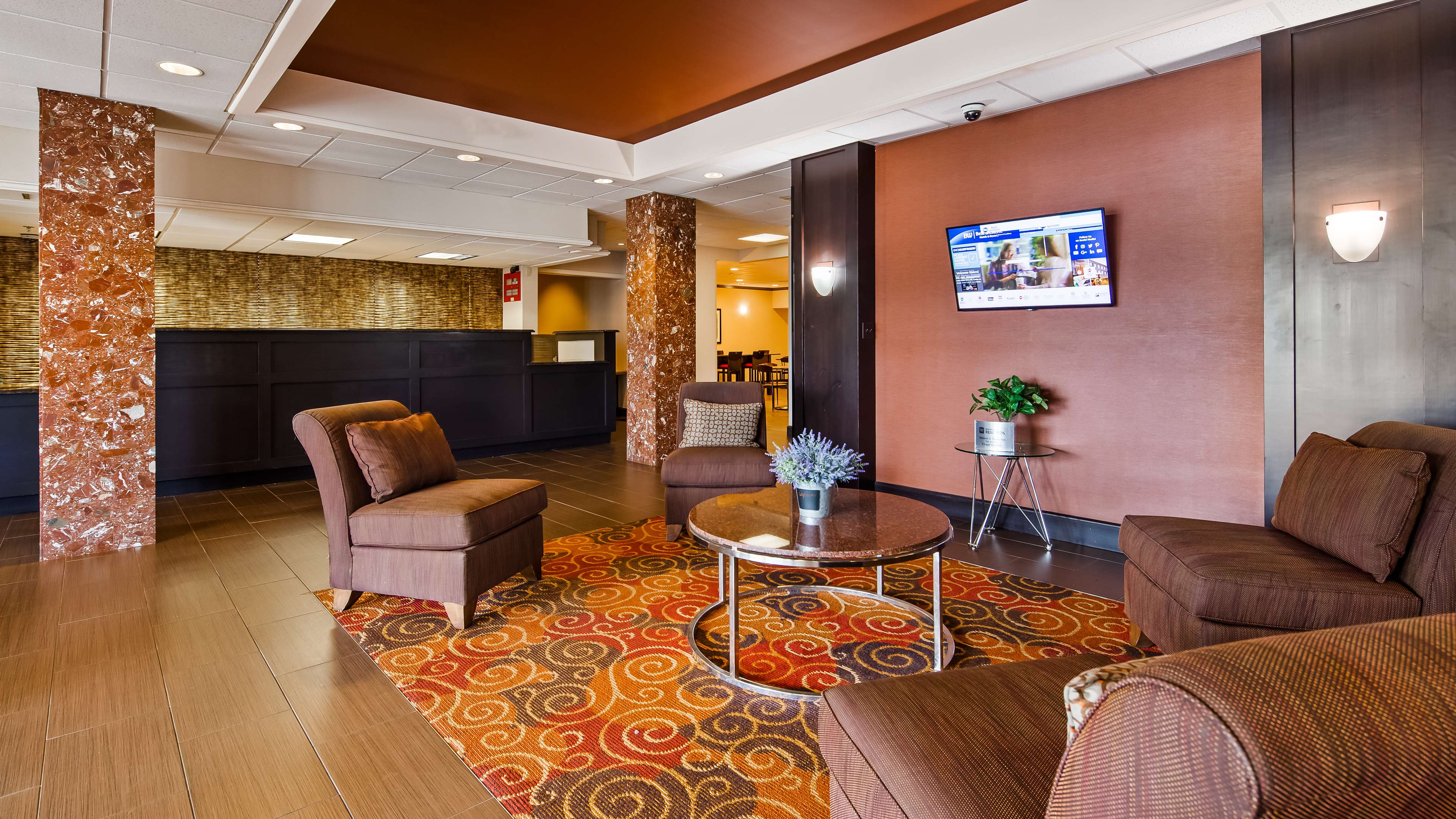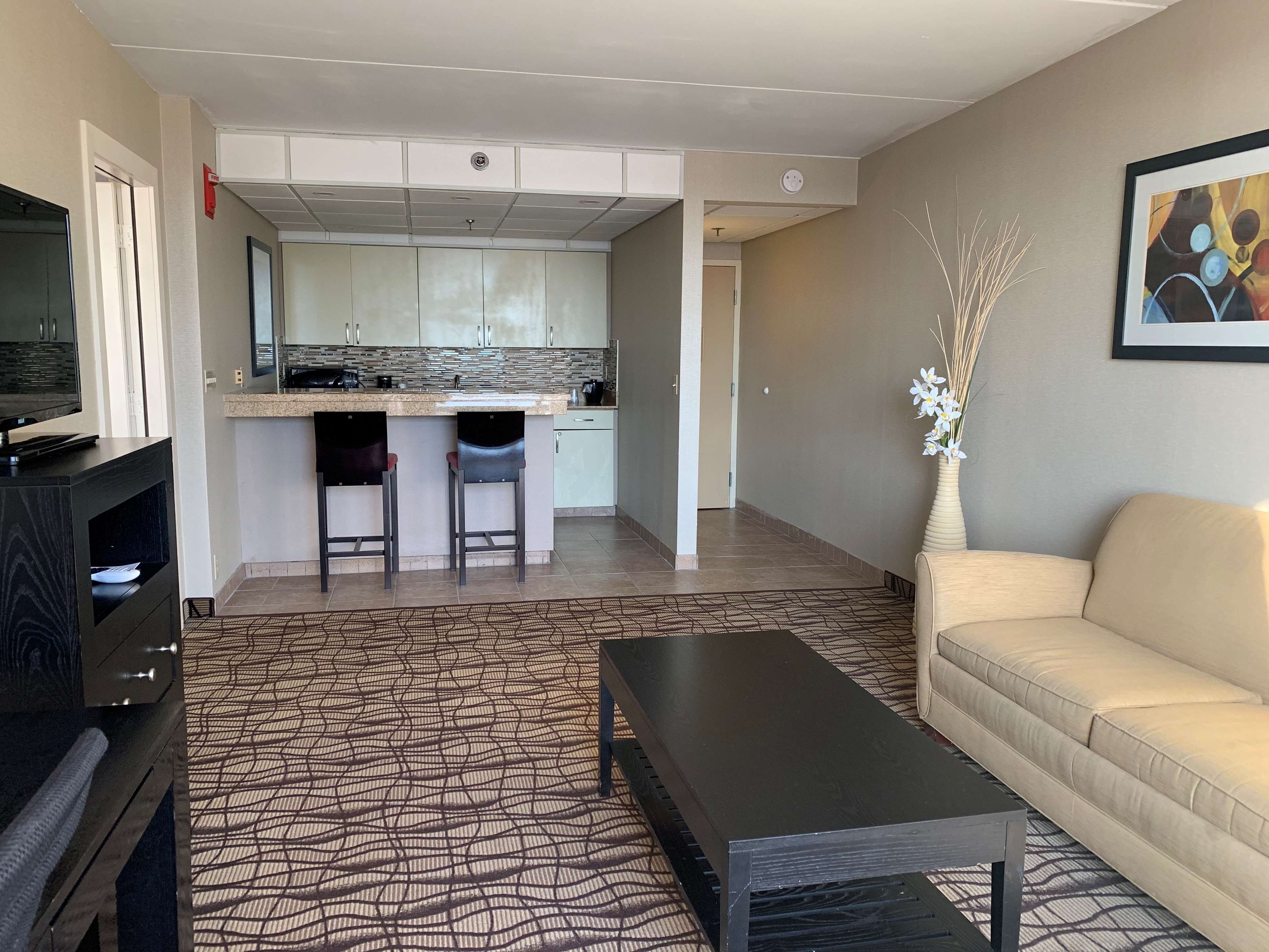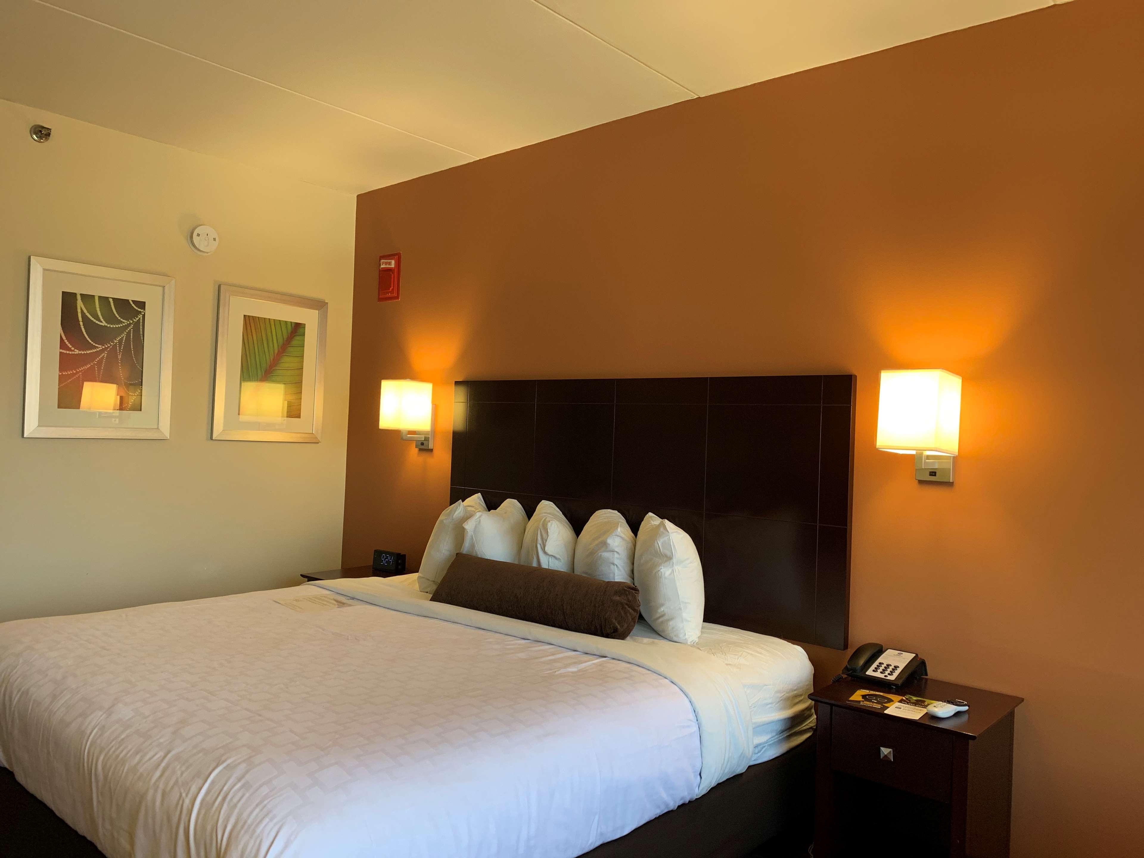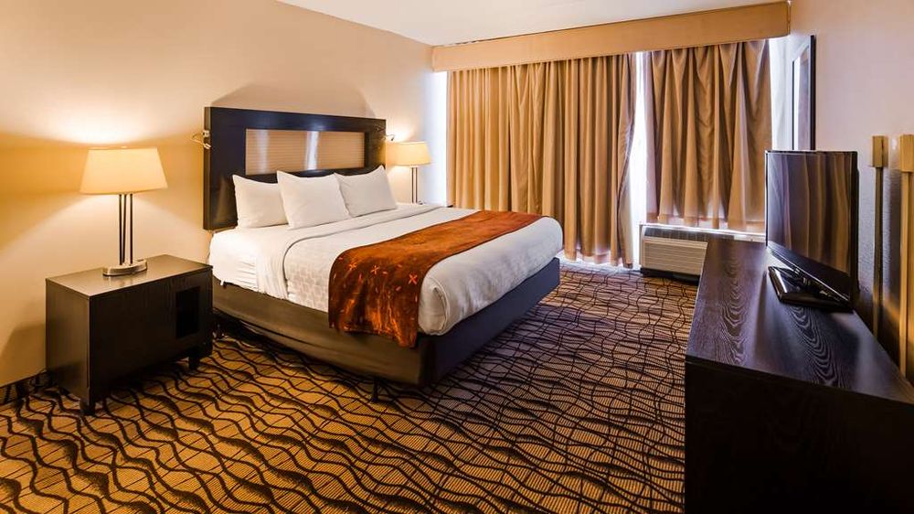 The Best Western Executive Hotel of New Haven offers a decent and affordable place to stay, especially for families or those seeking a quiet getaway. The hotel is conveniently located near a busy intersection and across from a Walmart, making it easy for guests to access shopping and supplies. The property shares its space with a gas station, which can be helpful for travelers filling up tanks during long trips. Parking can be limited at times, but guests have reported that their vehicles remain safe. The rooms are generally clean and well-maintained, with no strong odors or mold, and feature fresh linens and bathrooms. However, some rooms may be outdated, especially the bathrooms, which could benefit from updates. Guests have noted issues such as non-functioning electrical outlets, poor water pressure, and noisy air conditioning. The hotel has only one elevator, which can be slow and sometimes gets stuck, leading to longer wait times, especially when used by staff and guests alike. The staff is friendly and pleasant, with breakfast staff receiving particular praise for their service. The free breakfast offers a selection of breads, muffins, danish, waffles, eggs, potatoes, sausages, and beverages, though some find the hot foods to be cold and less flavorful. The water fountain operates only during breakfast, requiring guests to buy water at other times. Overall, the hotel is a basic, serviceable option with friendly staff, and it provides good value for the price, though some maintenance issues and outdated amenities could be improved.
