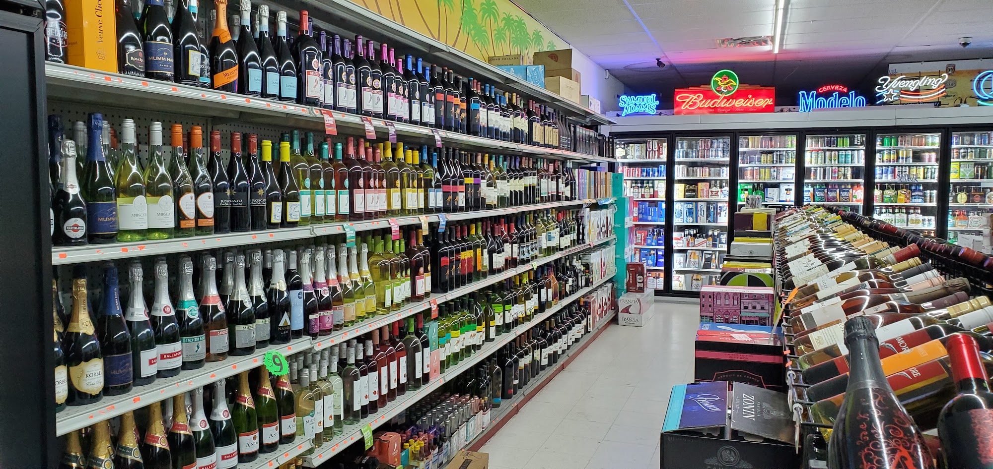 Great selection.High end liquors along with popular brands.No lottery.....Very clean and attractive store.Everything is nicely displayed.