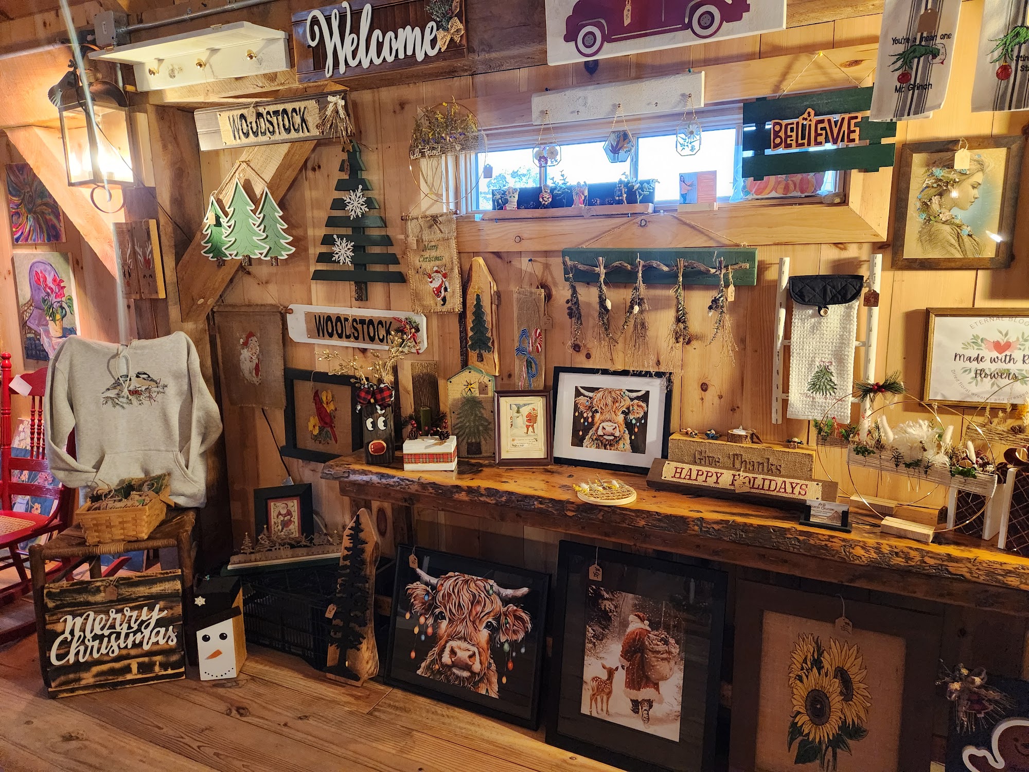Charming barn atmosphere with crafts, plants, food items all locally made.