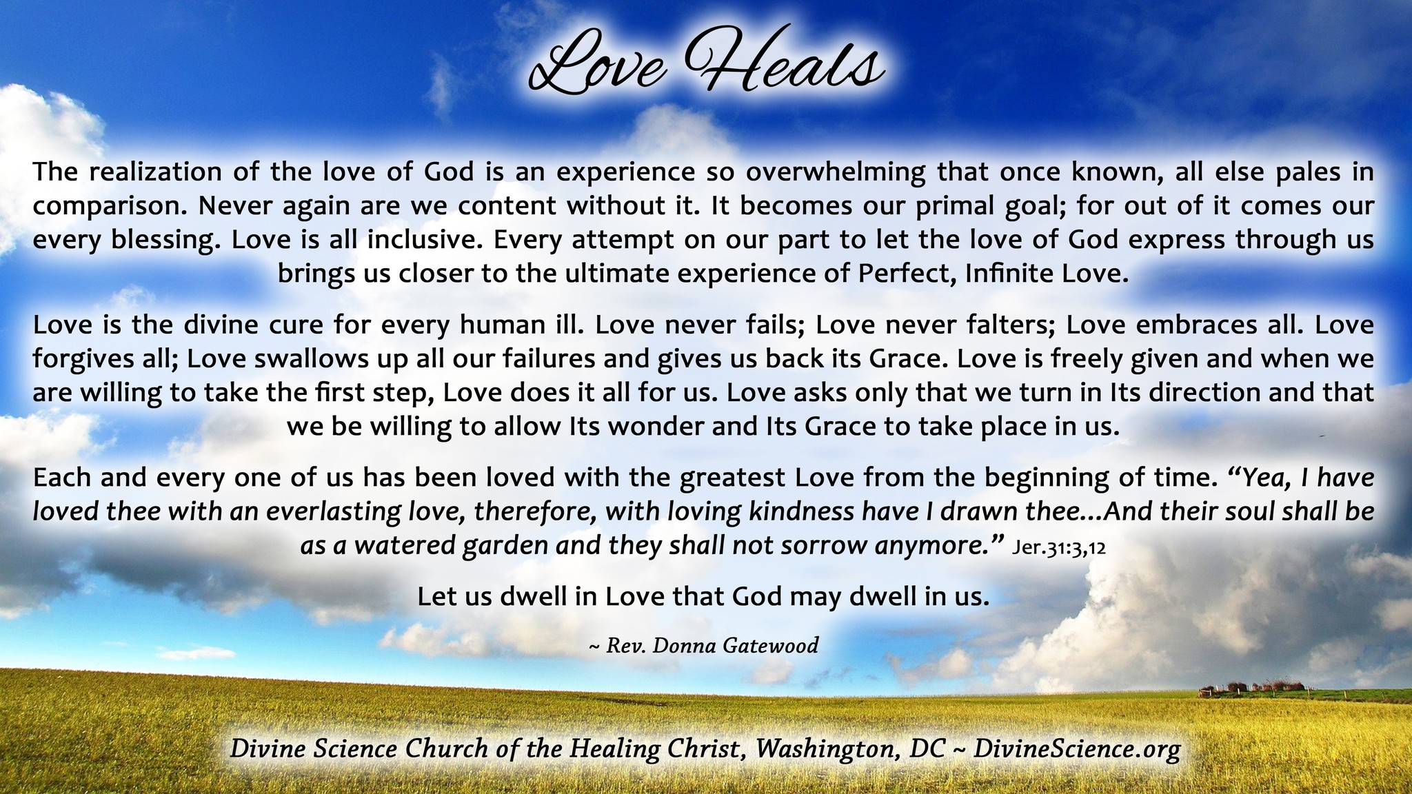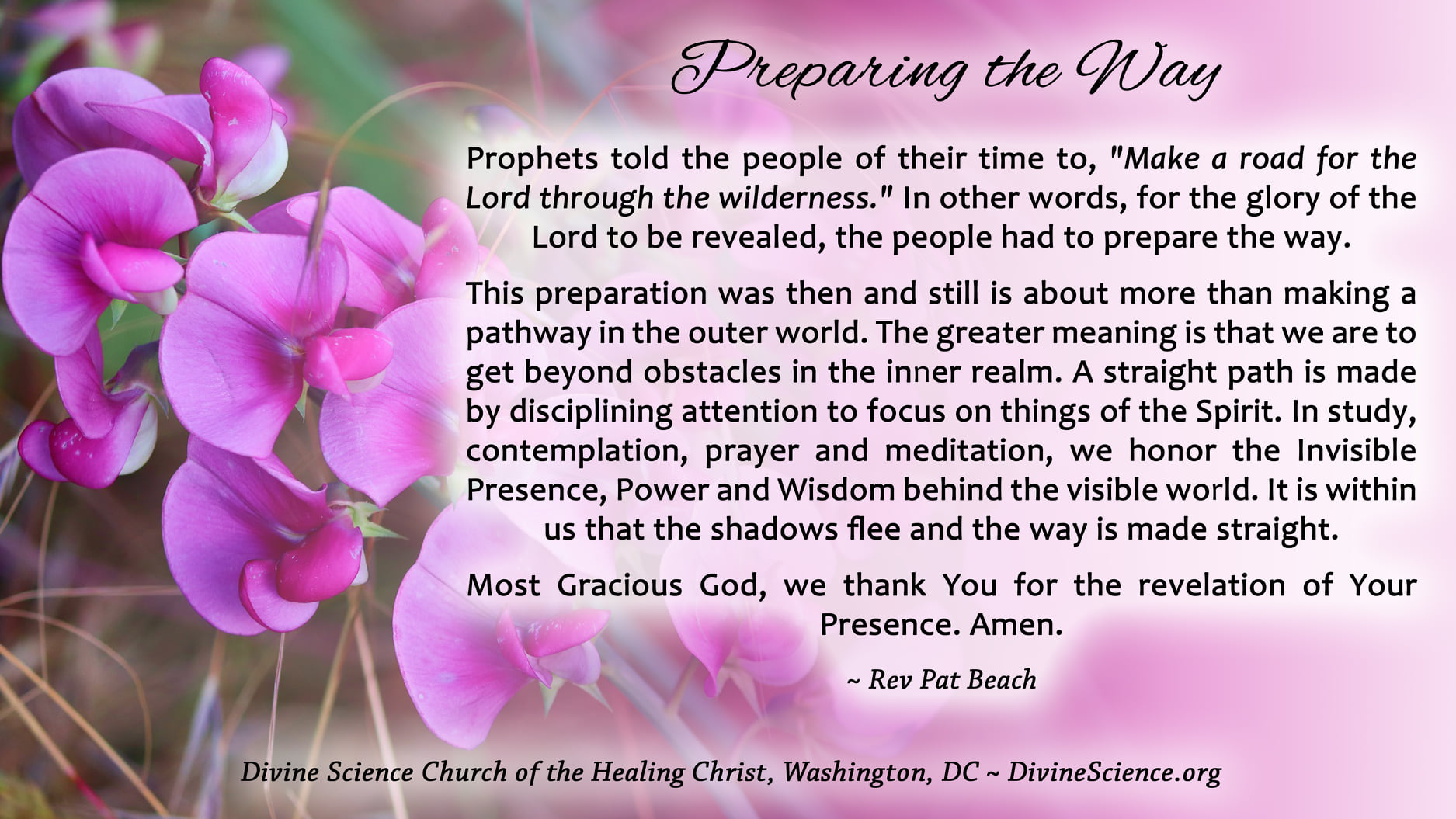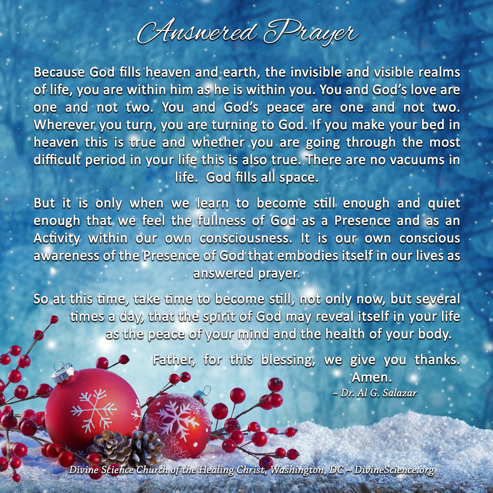 We are most happy and privileged to be part of such a valuable teaching of Truth Principles. As a Divine Science Church and Extension Campus here in Port Elizabeth, South Africa, (Association of Creative Thought) we enjoy the connection and communication with the School and your Church.