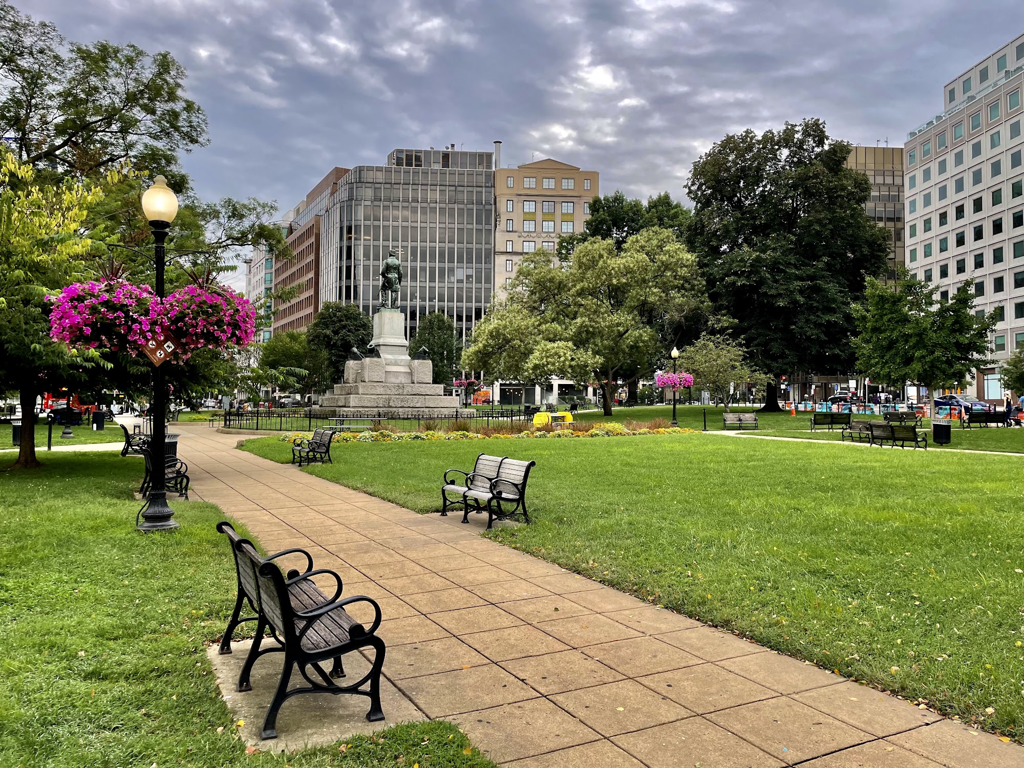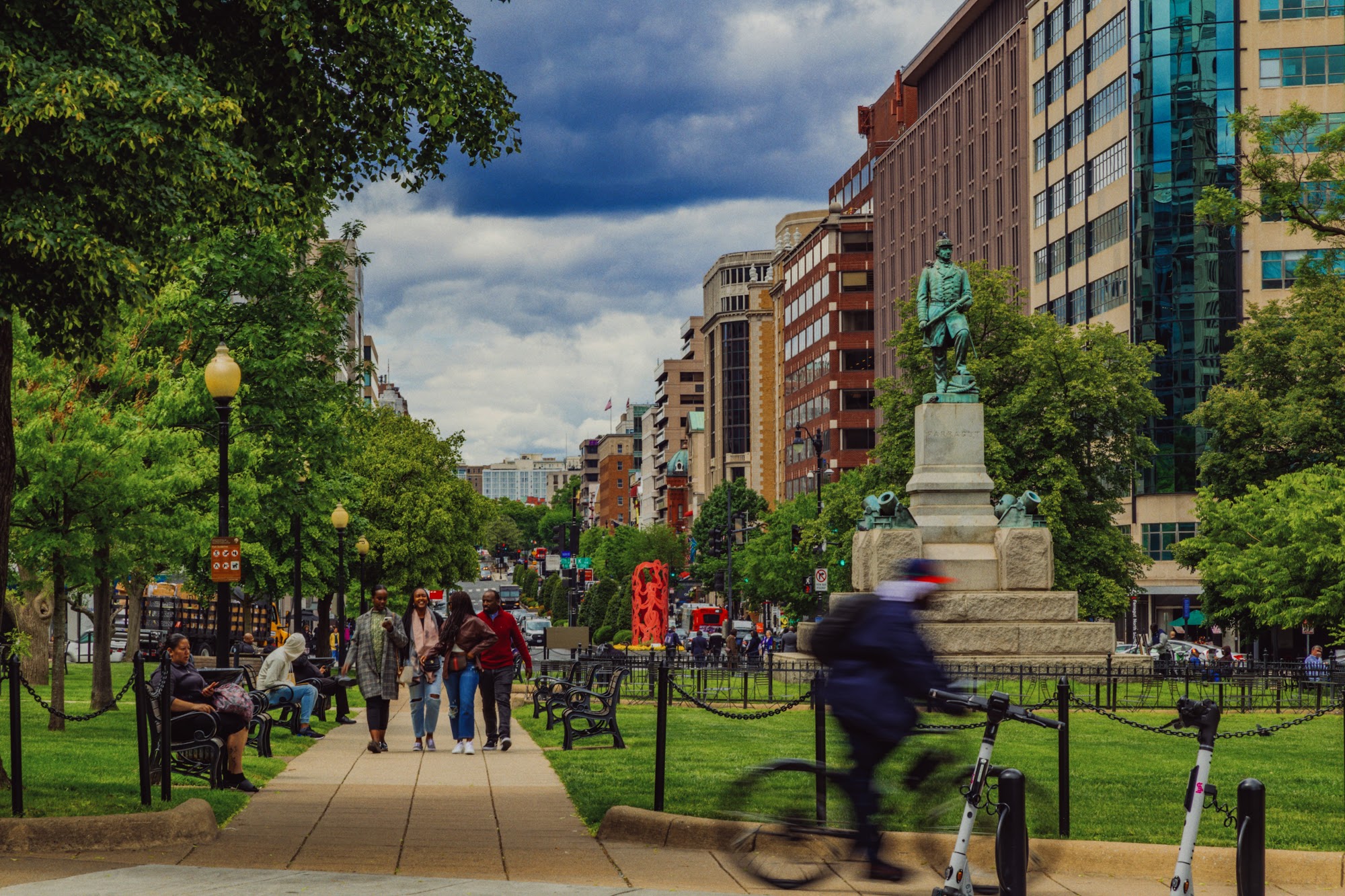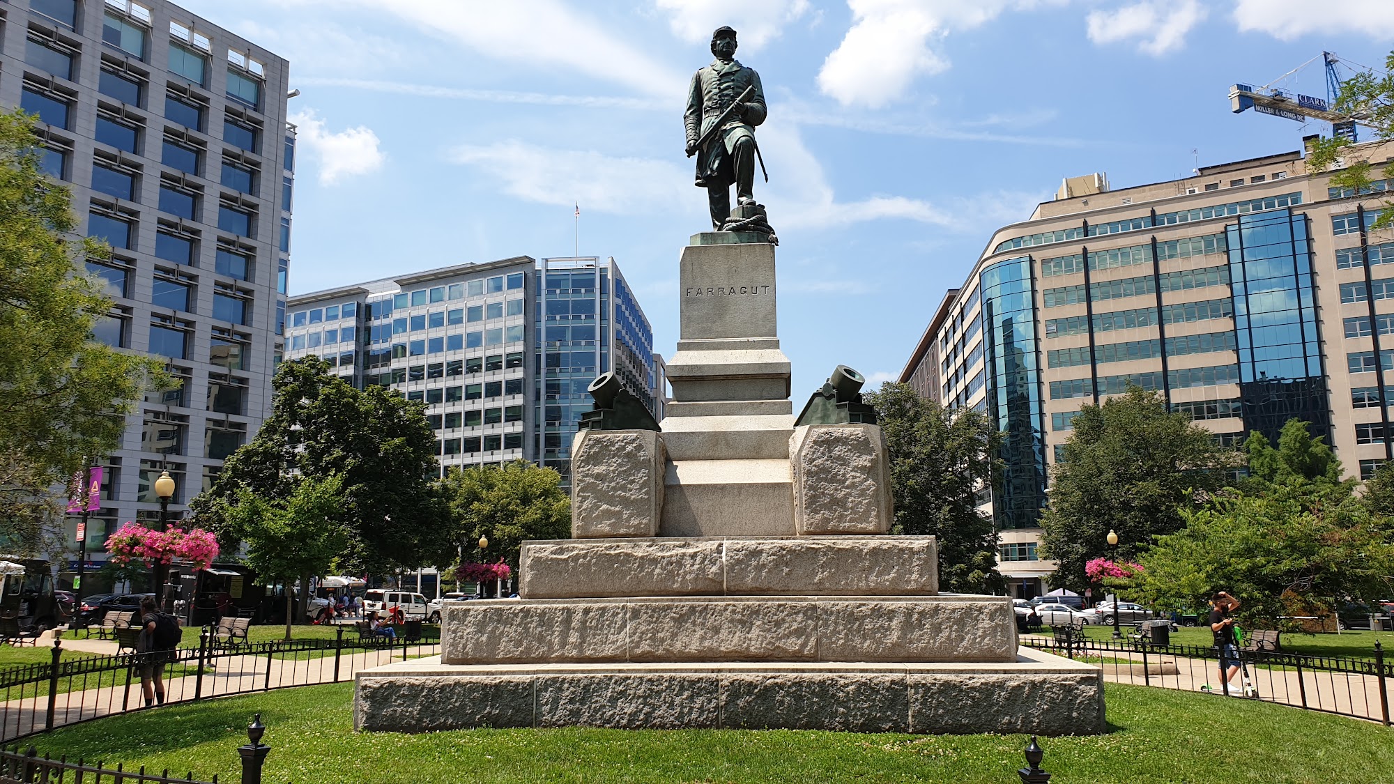 Farragut Square is a very nice, big open park in a central location. It is a peaceful and quiet place for a leisurely lunch or a walk, with great seating throughout. The square is a main place for two metro lines and a starting point for city buses. It features an interesting statue made from an old ship's anchor. The area offers a plethora of nearby eateries. A common note is that the park is often filled with homeless people, who find refuge there, sometimes causing disturbances. At night, nearby streets have clubs for adults.