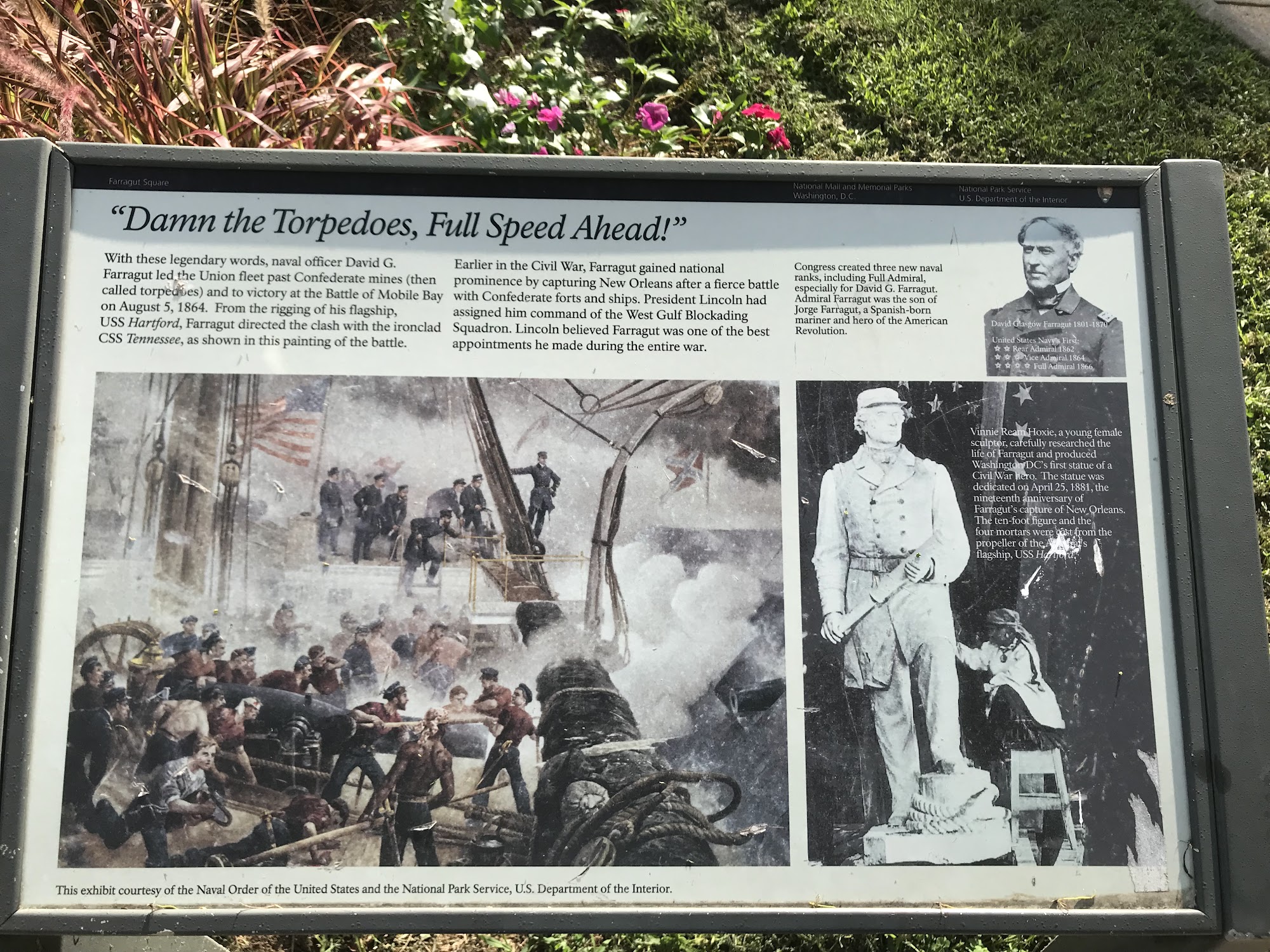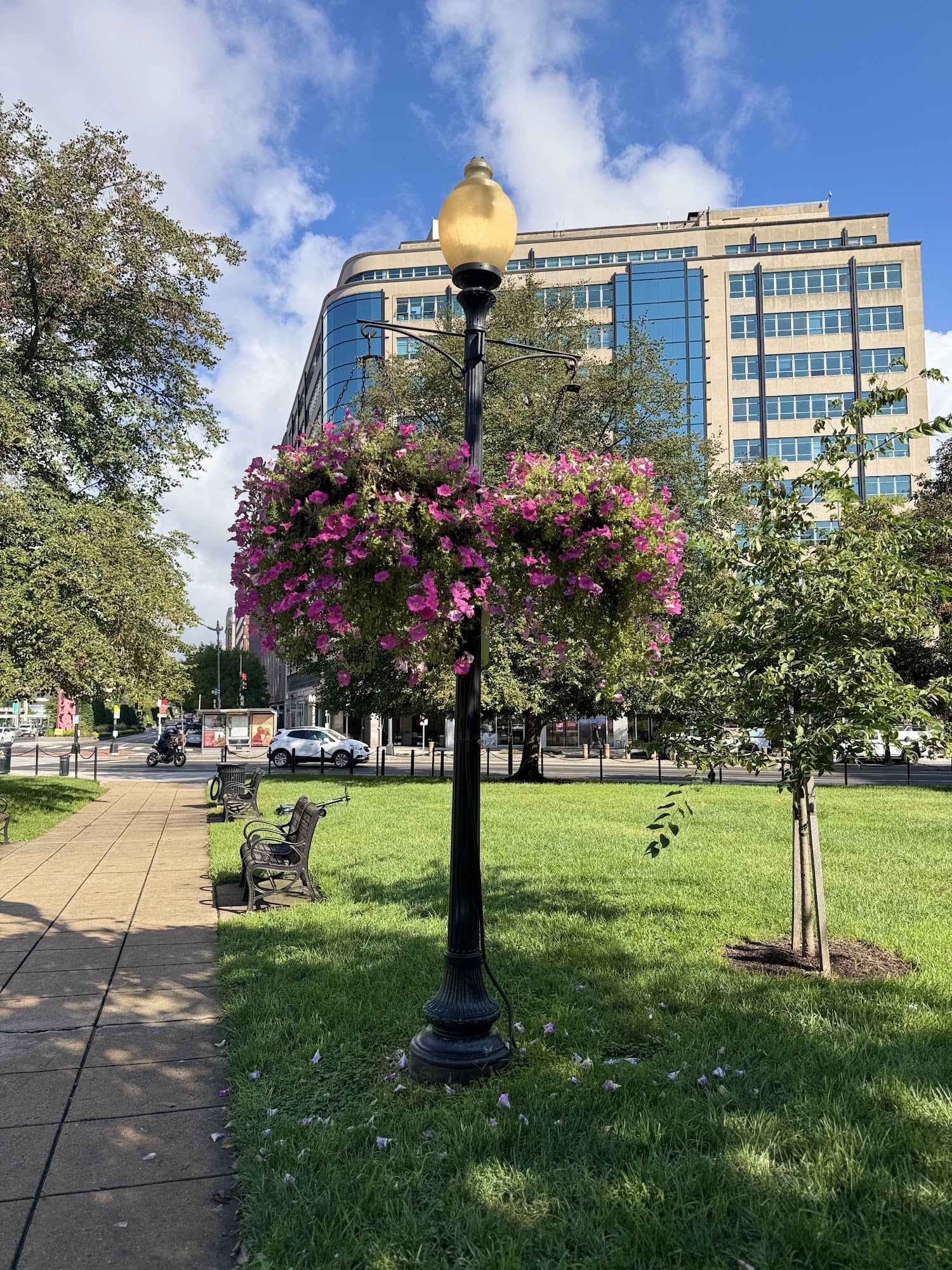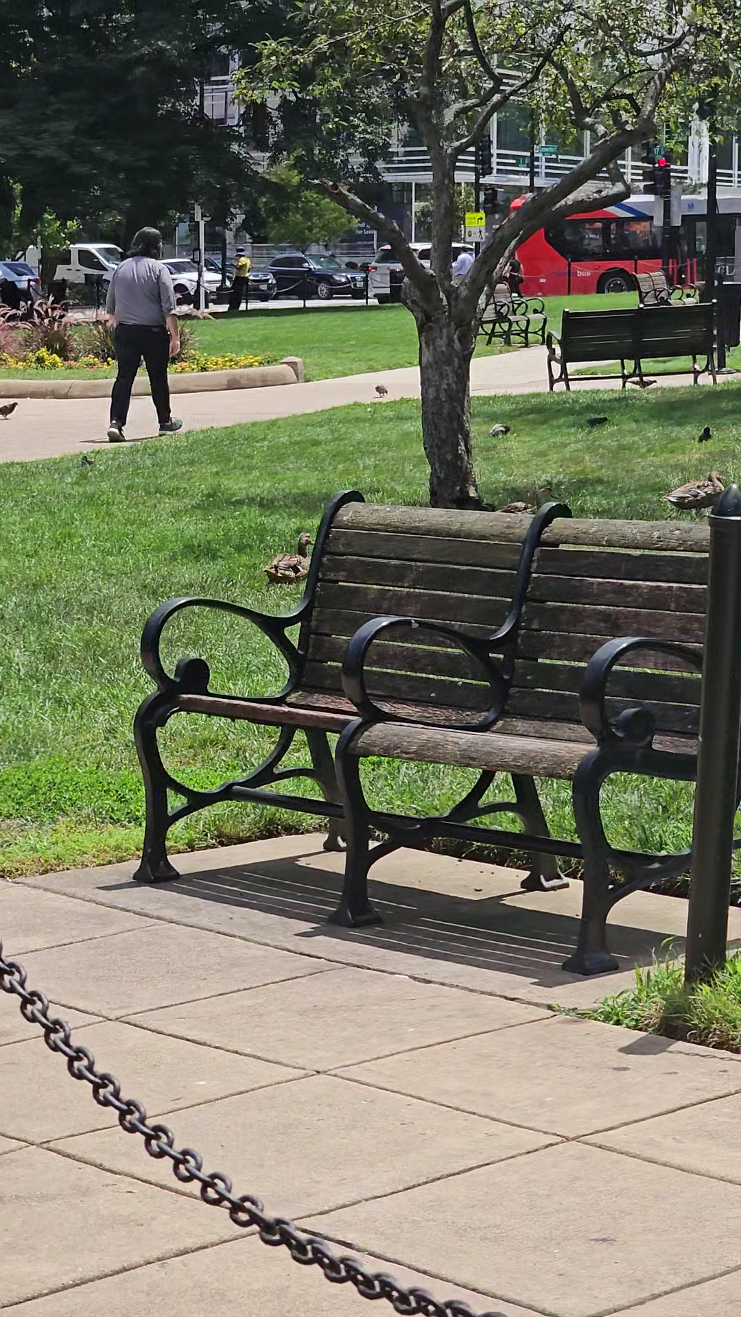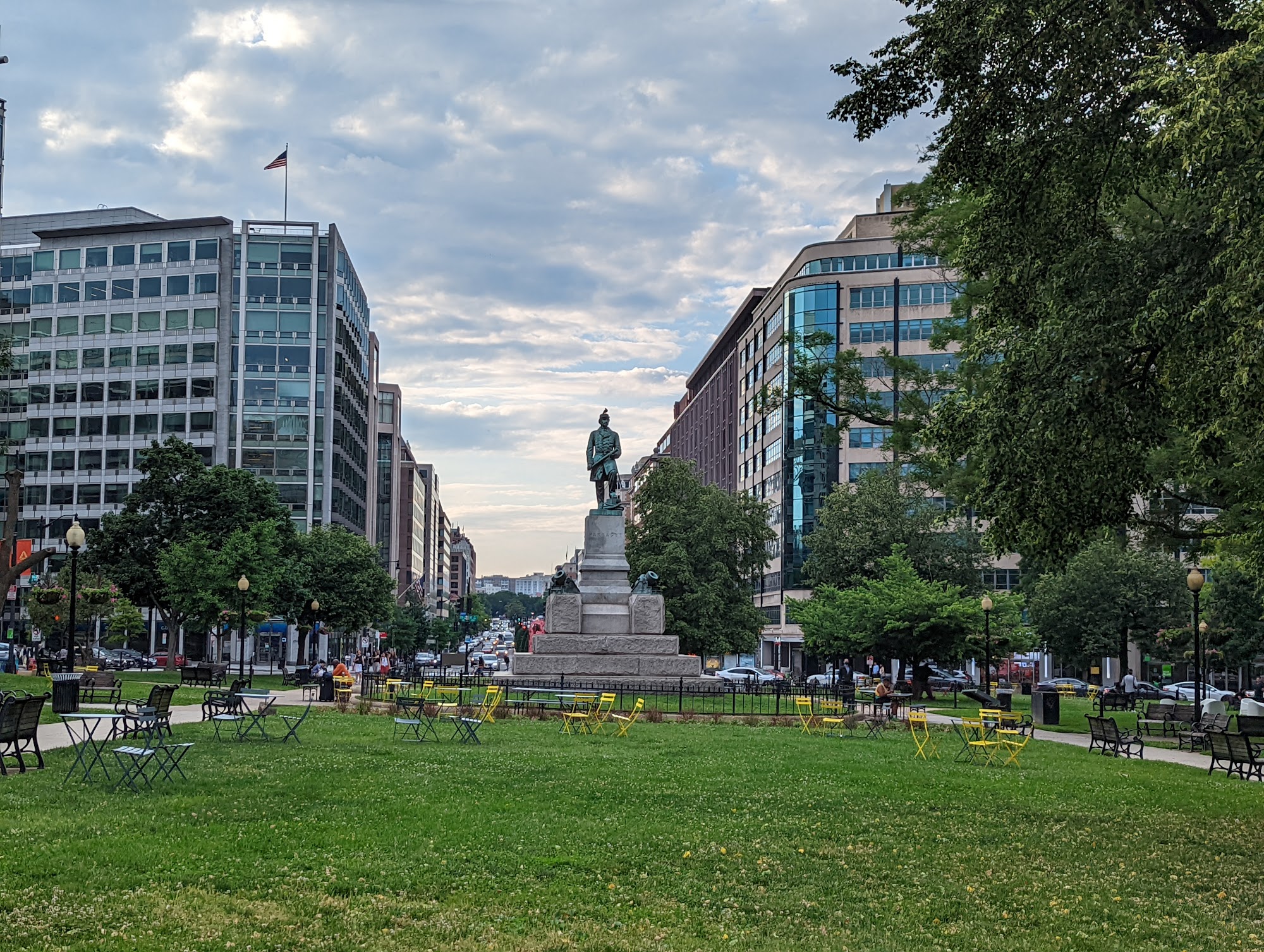 Farragut Square is a very nice, big open park in a central location. It is a peaceful and quiet place for a leisurely lunch or a walk, with great seating throughout. The square is a main place for two metro lines and a starting point for city buses. It features an interesting statue made from an old ship's anchor. The area offers a plethora of nearby eateries. A common note is that the park is often filled with homeless people, who find refuge there, sometimes causing disturbances. At night, nearby streets have clubs for adults.