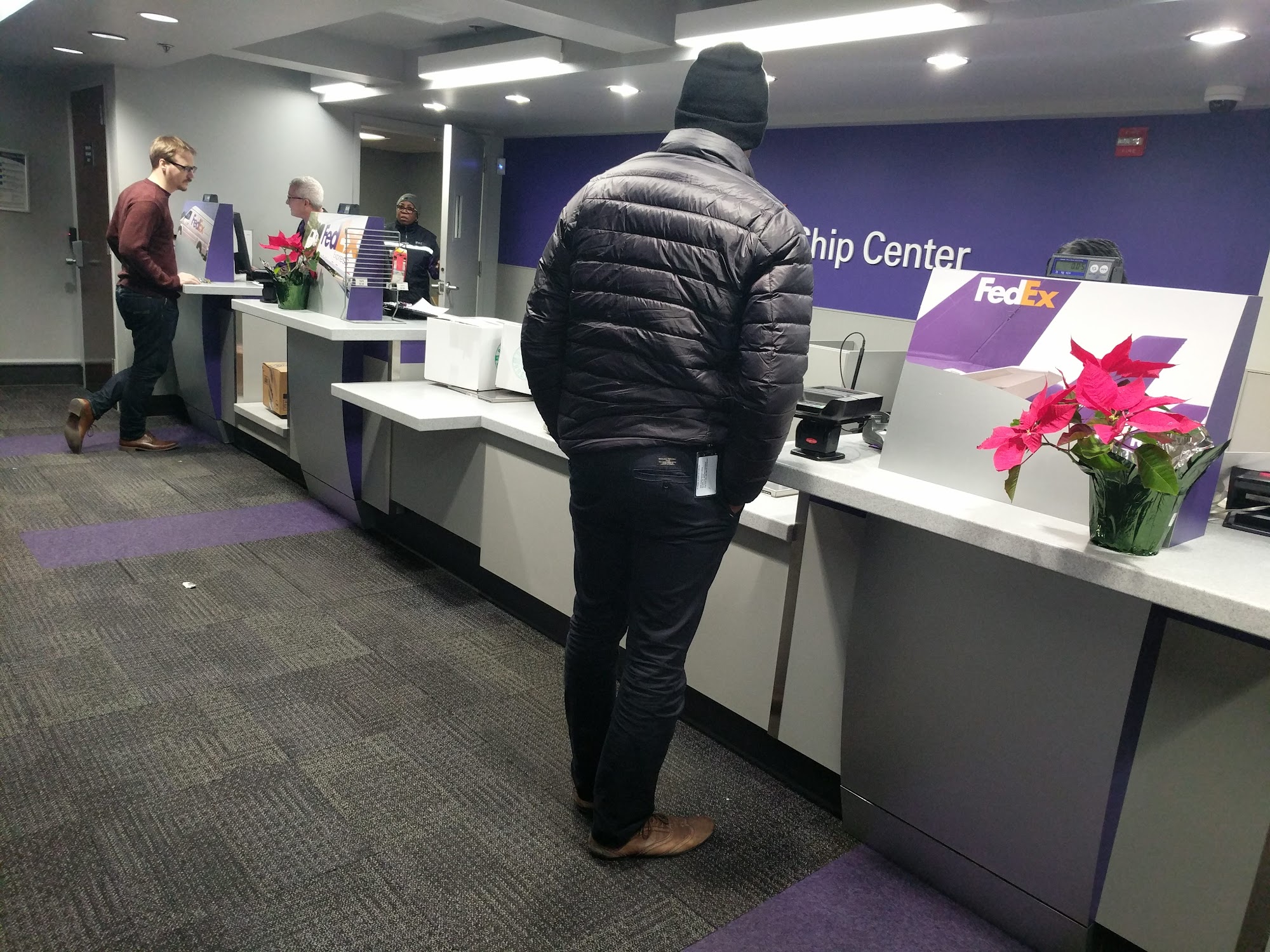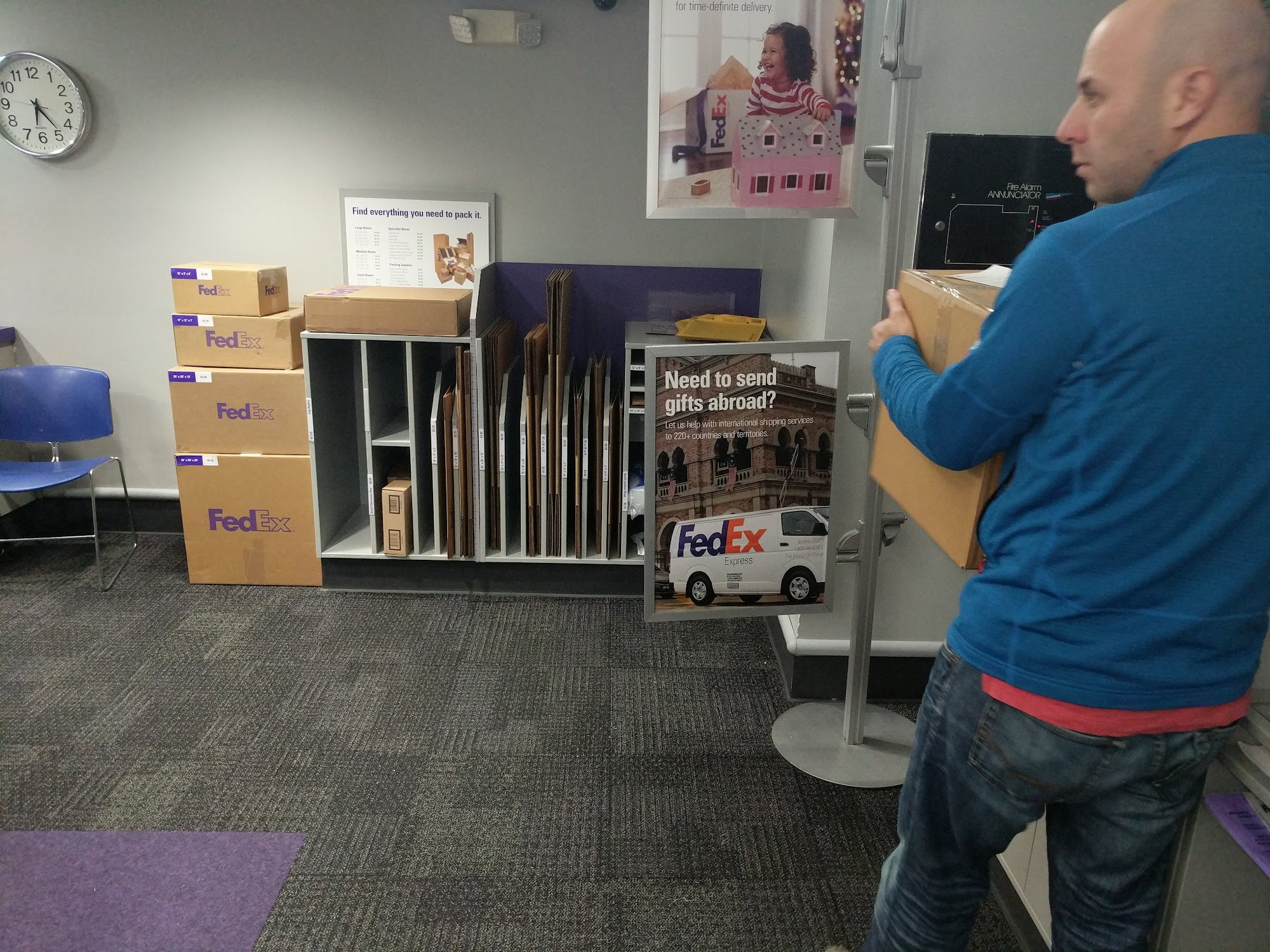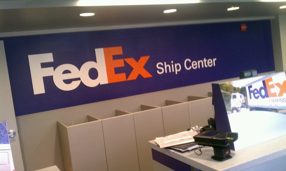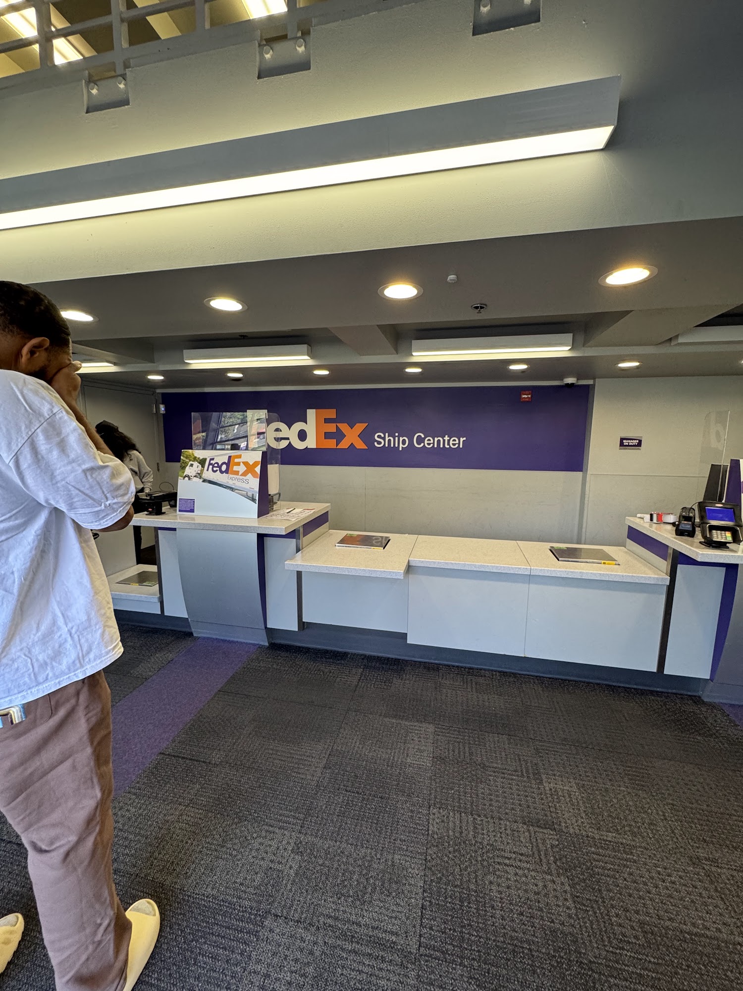This office cannot (or at least claims it cannot) print shipping labels. You will need to have your label already on the package if you are dropping it off here.