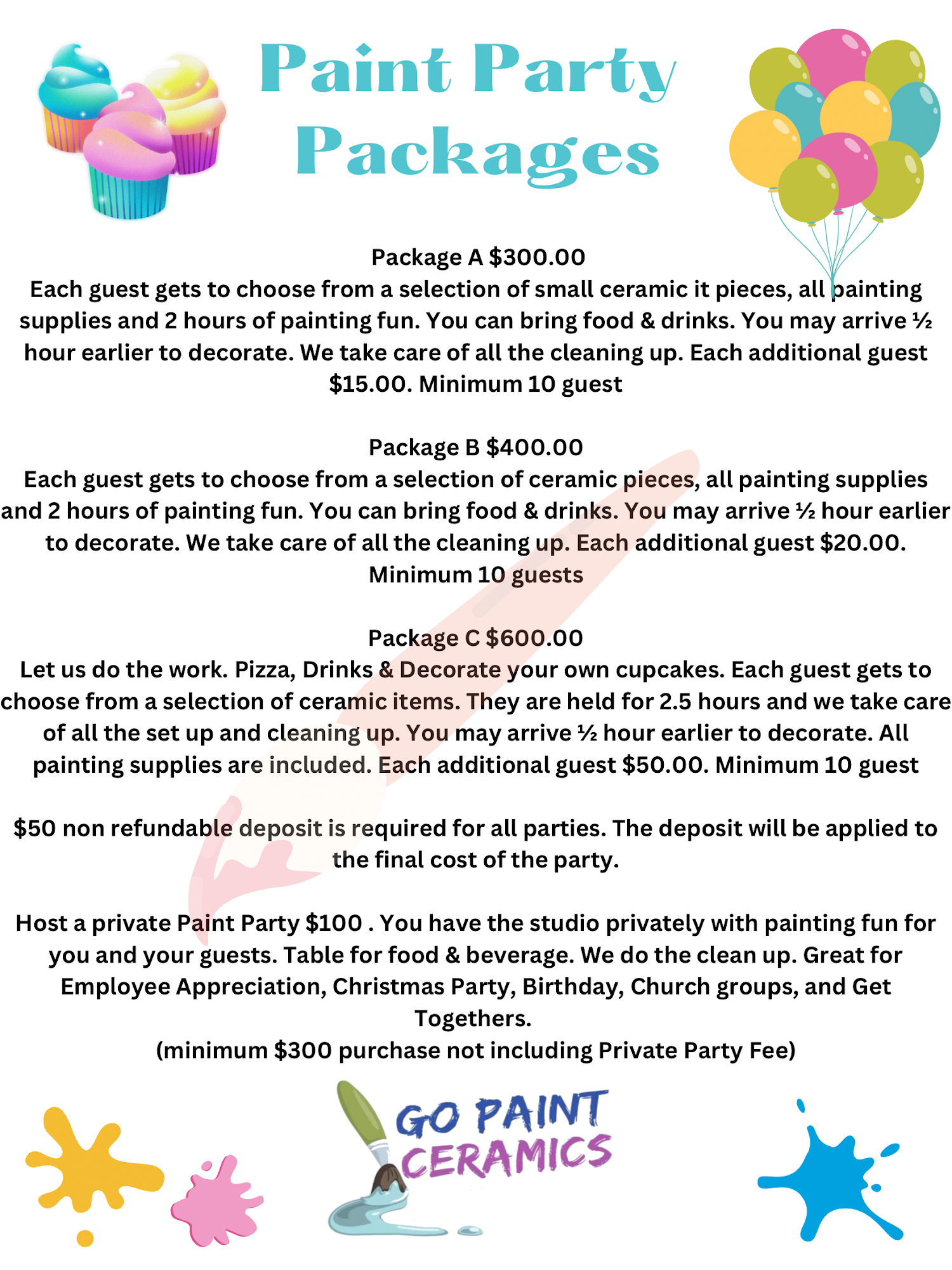 Welcome to the Studio! A place to have fun and let your creativity flow. Select from over 100+ of ceramic pieces. Take pieces home to paint in your free time, or stay and paint for $7.00. Schedule your next birthday party, girls day out, fundraisers or groups with us. Items are handmade on site here in Milford De.