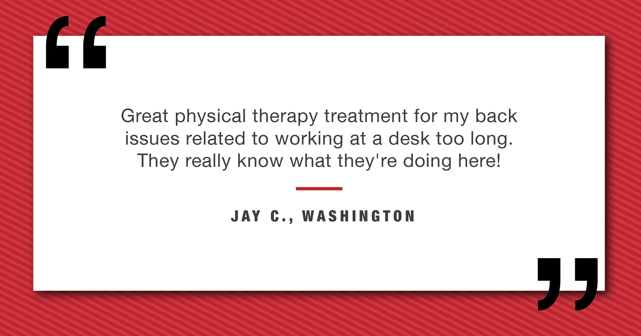 It was so nice when I walked in the door and everyone would say hello. Also all the therapists would listen to me about my pain and be considerate about the exercises I had to do. And Dion gave the best massages for my neck.